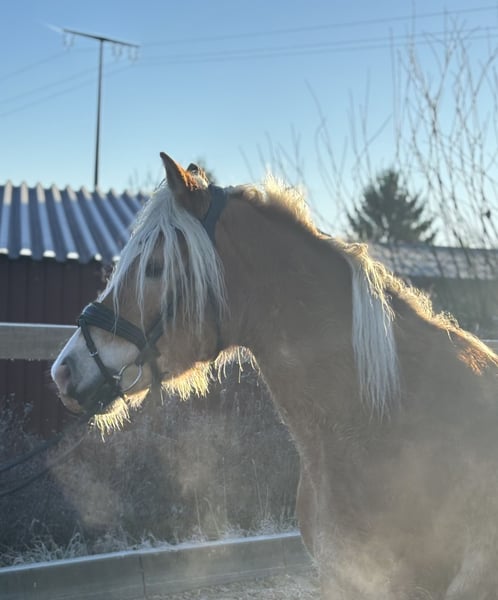 Sie im Umgang mit Menschen und anderen Pferden super brav, immer gelassen und von jedem zu händeln. Sie verfügt über drei sehr gute Grundgangarten, ist einfach zu reiten, sitzbequem und macht im Viereck eine gute Figur. Außerdem geht sie gut vorwärts und ist ein sportlicher Typ. Sie zeigt auch viel Spaß am Springen, hat viel Freude dabei und verfügt dabei über eine schöne Manier. Ein weiterer schätzenswerter Bonus ist ihre absolute Verlässlichkeit im Gelände. Sowohl alleine als auch in der Gruppe geht sie brav vom Hof und ist im Gelände unerschrocken und in allen Grundgangarten brav zu reiten. Sie kennt Hunde, LKWs, Autos und Fahrräder.