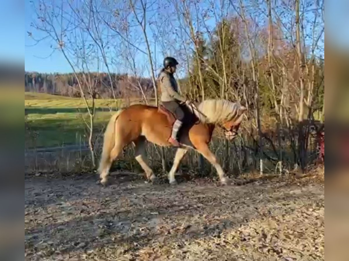 Wir verkaufen unsere 8 jährige Haflingerstute Nava aufgrund von Zeitmangel, an einen Bestplatz. 4 jährig haben wir sie von einer Alm in Slowenien gekauft, dort konnte sie im Herdenverband aufwachsen und war als 2a Zuchtstute eingetragen. Eingeritten bin ich sie dann selbst, wobei sie sehr brav war. Grundgangarten, Schenkelweichen und Halten kennt sie. Longe und Bodenarbeit auch. Ich bin sie immer ohne Sattel (mit Physiopad) geritten, da ich nie einen Passenden für sie gekauft habe. Nava ist ein sehr lernwilliges Pferd, das mehrmals die Woche gearbeitet werden will, da ihr sonst einfach langweilig ist. Sie macht nach längeren Pausen zuverlässig einige Freudenhüpfer (nicht unter dem Sattel), ist dabei jedoch nie bösartig. Wenn man sie nach längerer Pause vor dem Reiten longiert, kann sie ihre überschüssige Energie loswerden und ist dann unterm Reiter auch brav. Vor allem auf Anfänger und Kinder hat sie immer besonders gut aufgepasst. Angst hat sie vor nichts, auch anderen Pferden zeigt sie souverän, dass man sich nicht fürchten muss, vor Planen, Fahnen, Geräuschen usw. In der Herde ist sie eher ranghoch, ordnet sich aber ein und versteht sich mit Stuten und Wallachen gleichermaßen. Verletzt war sie bei mir nie, auch Hufrehe hatte sie nie. Sie ist extrem trittsicher, auch schmale Wanderwege meistert sie ganz selbstständig. Schmiedefromm. Momentan ist sie zu dick, mit rationierter Fütterung und etwas mehr Bewegung wird das schnell wieder. Durch unseren Familienzuwachs wurde sie länger nicht geritten, sollte aber nach ein paar Mal Longieren kein Problem sein. An der Longe hatte ich sie auch während meiner Schwangerschaft regelmäßig. Auf Wunsch kann ich sie vor dem Verkauf noch einige Male reiten. Dann wäre ein Probereiten möglich, allerdings nur bei ernsthaftem Interesse. Wer bis jetzt gelesen hat, kennt meine ganz ehrliche Beschreibung zu unserer Nava. Ich denke wer sich in sie verliebt und Lust hat mit ihr zu arbeiten, mit dem geht sie durch Dick und Dünn. Deshalb wünsche ich mir für sie den passenden Menschen bei dem sie nicht zu kurz kommt! Platz vor Preis! Weitere Infos und Video auf Anfrage