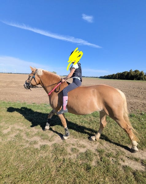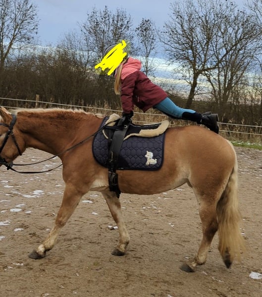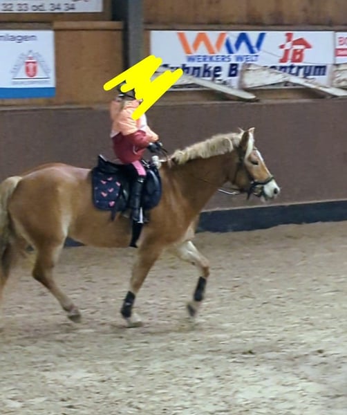 Hier kommt Lara! Lara besitzen wir seit 4 Jahren. Sie ist eine treue Seele, hat meiner Tochter das Reiten beigebracht. Nun hat meine Tochter andere Interessen und Lara darf ein andere Familie glücklich machen mit ihrem Goldcharakter. Lara macht jeden Spaß mit: Ringreiten, Turniere, Ausritte mit anderen Pferden, alleine oder mit Fahrrad. Man kann auf ihr Voltigieren (hier ist sie allerdings nicht die Fleißigste). Sie ist in jeder Situation händelbar von Groß und Klein. Ein Parcours absolviert sie brav. Wir haben auch eine Kutsche gekauft im Herbst. Nur zum Einfahren kam ich leider nicht mehr, da ich schwanger geworden bin und vorraussichtlich im Frühjahr dafür keine Zeit haben werde. Die Kutsche darf aber gegen Aufpreis mitgenommen werden. Lara ist ein "Koppelunfall" (aber reinrassig) und besitzt einen Pass ohne Abstammung. Sie steht in einer gemischten Herde und macht für Futter alles. Sie wurde uns als Ekzemer verkauft. In den letzten zwei Jahren benötigte sie aber nur eine Fliegenhaube. Decken, Fliegenhaube, Sattel und Trense nimmt sie mit in das neue Zuhause. Sie kennt Offenstall und im Winter Boxenhaltung mit täglichen Weidegang. Sie kennt es auch alleine zu sein und klebt nicht am Zuhause, wenn sie mal alleine ausreiten muss. Wir haben ganz viele verschiedene Videos, die wir gern auf Anfrage versenden. Aufgrund der bevorstehenden Geburt meines zweiten Kindes, ist es Probereiten bis Mitte/Ende Februar von Vorteil ;)