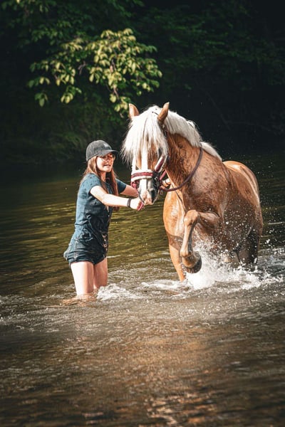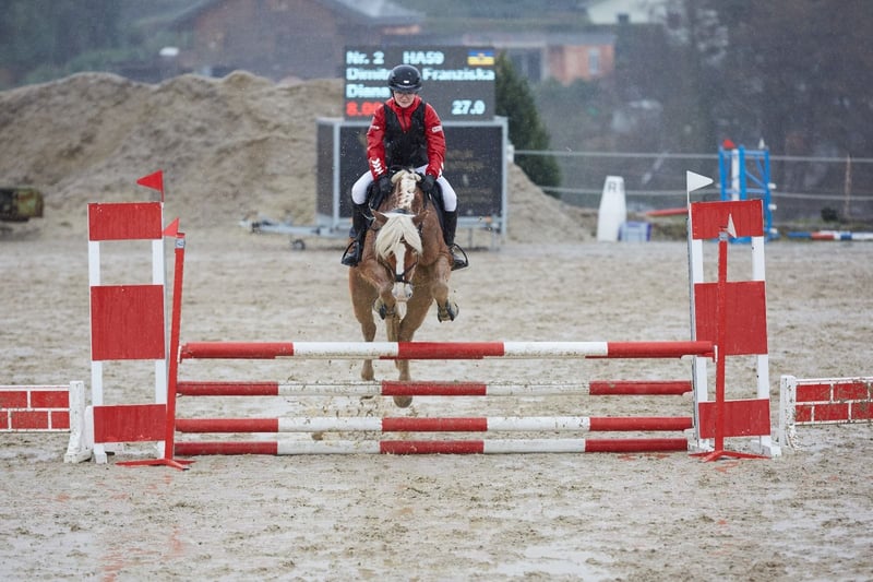 Na sprzedaż wystawiona jest 9-letnia klacz haflingerska Diana. Odniosła ze mną duże sukcesy na konkursach, osiągając poziom klasy A w ujeżdżeniu, skacząc do 85 cm w skokach oraz startując w WKKW do VH80. W treningu opanowała podstawy wszystkich lekcji L i jest bardzo łatwa oraz precyzyjna w jeździe. W WKKW jest zawsze zmotywowana, pewnie skacze wszystko, co stanęło jej na drodze, i uwielbia wodę. Na zawodach jest całkowicie opanowana i zna sytuacje, gdy musi być sama lub na nocnych konkursach. Jest niezawodnym partnerem, idealnym dla początkujących, dzieci oraz osób zaczynających przygodę z konkursami. Jest absolutnie odważna, bardzo przywiązana do ludzi i chętnie się bawi. Diana lubi jeździć zarówno solo, jak i w grupie. Jest również teoretycznie wytrenowana, choć w ostatnich latach nie była już dalej rozwijana. Bez problemu wsiada do przyczepy, jest podkuwana (cztery kopyta) i nie wykazuje żadnych niepożądanych zachowań zarówno w kontakcie, jak i podczas jazdy. Matka Diany to prestiżowa klacz Donaufürsten (MV: Nestroy), a jej ojcem jest sprawdzony Steinkogel. Sama również jest wpisana do księgi hodowlanej 2a (oceny na zdjęciu), co czyni ją atrakcyjną również do hodowli. Obecnie przebywa w stajni aktywnej z około 15 innymi klaczami i jednym ogierem. W stadzie zajmuje wysoką pozycję. Sprzedawana jest, ponieważ zamierzam przejść na dużego konia. Oddaję ją wyłącznie w dobre ręce — nie do typowych szkół jeździeckich.