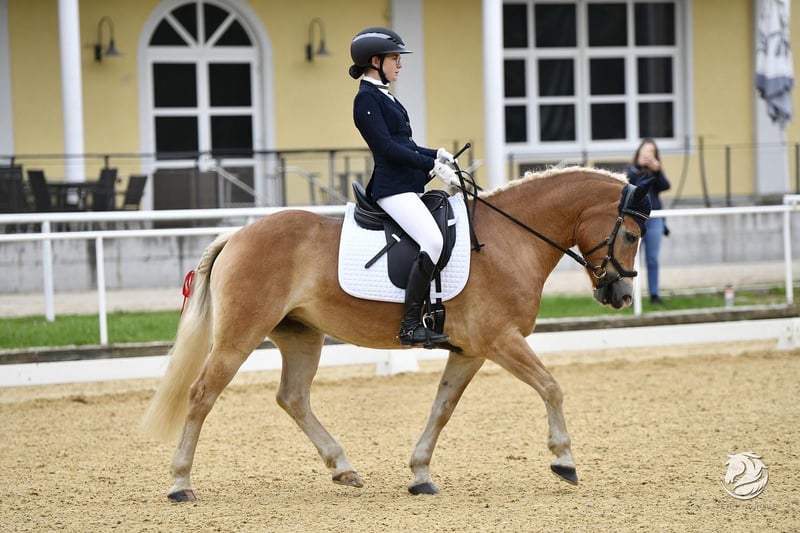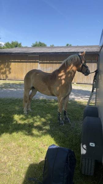 Zum Verkauf steht die 9-jährige Haflingerstute Diana. Sie ist mit mir auf Turnieren sehr erfolgreich bis zur Klasse A in der Dressur, im Springen bis 85 cm und in der Vielseitigkeit bis VH80 gelaufen. Im Training beherrscht sie außerdem die Grundlagen aller L-Lektionen und lässt sich dabei sehr leicht und fein reiten. In der Vielseitigkeit ist sie stets motiviert, springt zuverlässig über alles, was man ihr in den Weg stellt, und liebt das Wasser. Auch auf Turnieren ist sie absolut abgeklärt und kennt es, alleine sowie auf Übernachtungsturnieren zu sein. Sie ist ein absolutes Verlasspferd und daher perfekt für Angstreiter, Kinder sowie Turniereinsteiger geeignet. Sie ist absolut unerschrocken, sehr menschenbezogen und macht jeden Spaß mit. Diana liebt es, sowohl alleine als auch in der Gruppe ausreiten zu gehen. Außerdem ist sie theoretisch eingefahren, dies wurde in den letzten Jahren jedoch nicht weiter gefördert. Sie steigt problemlos in den Hänger, ist schmiedefromm (4× Eisen) und zeigt sowohl im Umgang als auch beim Reiten keinerlei Unarten. Dianas Mutter ist die Prämienstute Donaufürsten (MV: Nestroy), ihr Vater der altbewährte Steinkogel. Auch sie selbst ist ins Stutbuch 2a eingetragen (Noten siehe Foto) und daher interessant für die Zucht. Zurzeit steht sie in einem Aktivstall mit etwa 15 weiteren Stuten und einem Wallach. In der Herde ist sie ranghoch. Abgegeben wird sie, da ich auf ein Großpferd umsteige. Sie wird ausschließlich in gute Hände abgegeben — keine klassischen Schulbetriebe.