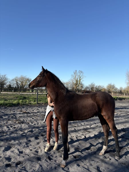 À vendre – L-Palerme Caballarius ✨ Poulain Hanovrien – grand modèle, prometteur pour le dressage ✨ L-Palerme Caballarius Poulain Hanovrien, inscrit au stud-book de la race Né en juin 2025 ➡️ Disponible en juin Par Lord Leatherdale Et Lisa M des Paluds (par Bordeaux) 🔸 BDR de la mère : supérieur à 17 🔸 BDR du père : supérieur à 19 🔹 Robe : Bai avec deux balzanes blanches 🔹 Taille actuelle : 1m55 🔹 Taille adulte est estimée : 1m75 / 1m80 (Père : 1m71 – Mère : 1m76) Palerme est un poulain avec beaucoup de présence et de taille. Il se distingue par son excellent modèle, son très beau déplacement et son fort potentiel sportif, faisant de lui un poulain particulièrement prometteur pour le dressage en compétition. Côté caractère, c’est un poulain joueur, malin, curieux et téméraire, très proche de l’homme. Il grandira auprès de sa mère jusqu’à ses 10 mois afin de bénéficier d’un sevrage en douceur, lui offrant toutes les bases nécessaires pour devenir un cheval serein, équilibré et bien dans sa tête. Il est manipulé quotidiennement, il marche en main, est à jour de ses vermifuges, protocole vaccinal commencer et a déjà vu le maréchal-ferrant. 🏅 Lors de son identification par le stud-book Hanovrien, Palerme a reçu la médaille d’or des poulains 2025, soulignant sa qualité et son potentiel. 📍 Localisation : Pas-de-Calais (62) 📞 Contact : par MP ou au 07 71 80 70 08 #poulain #pasdecalais #chevaux #dressage #hanovrien #poulainavendre
