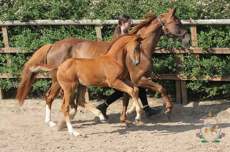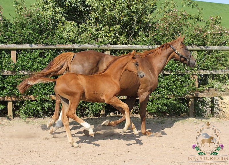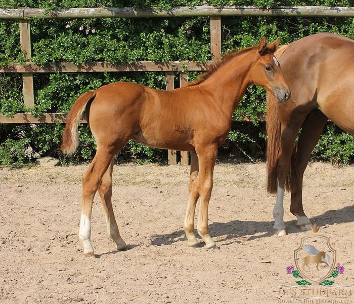 An exceptional colt of outstanding quality, MFS EXPRESSIV is the embodiment of elegance, athleticism, and top-tier dressage potential. With a beautifully refined head, harmonious conformation, and powerful, expressive movement in all three gaits, he is a standout prospect for both sport and breeding. This colt boasts a stellar pedigree: Sire: ESCANENO – A Premium Westphalian stallion, Escaneno impressed at his licensing with a final score of 9.03, including 9.8 for rideability and 9.5 for attitude and willingness to perform. His sire, Escamillo, was Vice World Champion of the six-year-old dressage horses and has produced numerous approved sons. Escaneno’s dam, Vaiana, is part of the celebrated “Reine Freude” family, winners at the Herwart von der Decken show. In 2021, his father Escamillo confirmed all expectations by becoming vice world champion of the six year old dressage horses. He was awarded premium at his licensing in Verden in 2017. This year he provided seven licensed sons. Mother of Escamillo is state premium mare Cassila, daughter of Rohdiamant and out of the famous German dam line of Cinderella of stud Wendeln. Many licensed stallions, state premium mares and successful sports horses stem from this dam line. Among other Cathy OLD, who was German National Champion of four year old mares in 2018. Cassila‘s mother Chantal (by De Niro) is mother of licensed stallions Romanist and Merogonie. Mother father Veneno was qualified to the final of the German National Young Horse Championships in 2015. He is successful with rider Kristy Oatly in competitions up to S*** level. Dam: MFS DE-NIRO’S WIE MUSIK – A homebred mare by the legendary DE NIRO, out of the maternal half-sister to DESPERADOS FRH, the late Olympic stallion. Desperados’ accolades include: Team Gold & Individual Bronze – Rio Olympics European Team Champion – Herning 2013 Team Silver – London Olympics WBFSH World No. 1 Dressage Horse – 2016 She is also maternal full-sister to the 5* International event horse DANITO ridden by Tamie Smith for USA. MFS DE-NIRO'S WIE MUSIK has bred us three foals so far, with her first born in 2023. She comes from an excellent performance dam line. Her siblings MFS DISCOMUSIK (competing up to Elementary level) and MFS FOREVER YOUNG (competing up to Medium level) are both proving themselves in the dressage arena. Grand-sire DE NIRO does not need any introduction. Seen as one of the GREATS of worldwide dressage breeding. klosterhof-medingen.de/en/Stallions/horse/de-niro. The combination of Dancier and Wolkenstein II produced Lordswood Dancing Diamond (by Dancier out of a Wolkenstein II mare) — highly successful in young horse dressage: winner of the 5‑year‑old finals at 2016 Bundeschampionate; then winner of the 6‑year‑old World Young Horse Championships in 2017. MFS EXPRESSIV combines elite genetics with natural talent and charisma. He is a serious contender for the international dressage stage and a compelling stallion prospect for the future. If you're seeking a colt with world-class potential, expressive movement, and impeccable bloodlines, this young star is not to be missed. https://www.mfsstudfarm.com/mfsstudfarmforsale.html