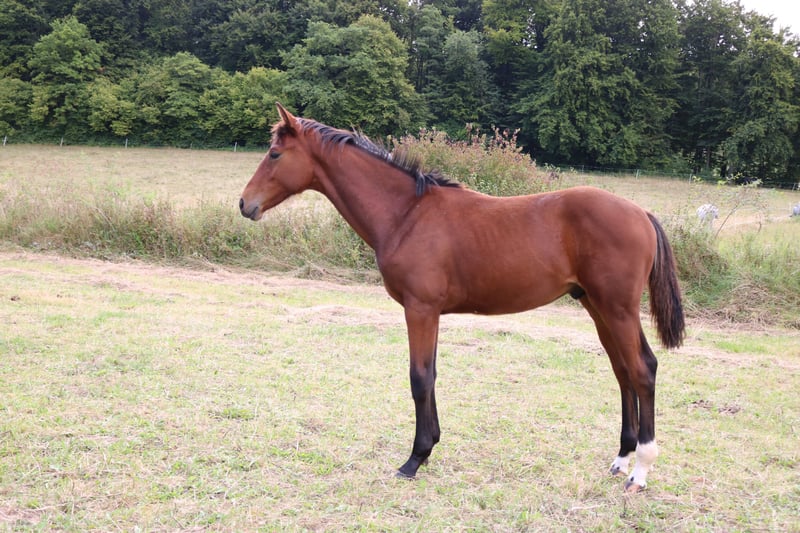 Hengstjährling von Von und Zu (LG Celle) S-Dressur erfolgreich der Mutterstamm bringt SPORTLICHKEIT aber auch CHARAKTER und RITTIGKEIT mit ! Mutter StPrSt, Rpfd. erfolgreich und Herwart v.d. Decken Schau 1e-dekoriert, sie ist MEGA LIEB und RITTIG und vererbt das auch durchschlagend an ihre Nachkommen, leistete auch sehr gute Dienste als erstes Umsteigerpferd für junges Mädchen, das aus dem Pony rausgewachsen war Großmutter, auch StPrSt mit guter SLP, Rpfd-Reserve und nach der Zucht als leistungsbereites Freizeitpferd (Dressur und Springen, auch Turnier) an Dame verkauft er ist langbeinig, korrekt, sehr edel, mit 3 guten Bewegungen, anhänglich und interessiert direkt vom Züchter aus erster Hand