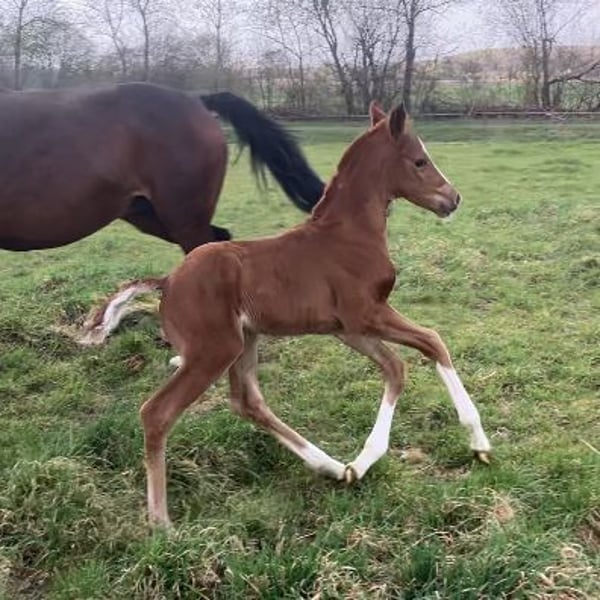 Dieser Jährling verfügt über 3 überdurchschnittliche GGA. Er steht auf einem stabilen, korrekten Fundament und zeigt eine starke, geschlossene Oberlinie. Er entstammt der berühmten Stutenlinie der Neastate, aus der schon unzählige Sportpferde, gekörte Hengste und Prämienstuten hervorgegangen sind. Ein 3/4Bruder(Valdiviani) befindet sich in Hengstaufzucht, eine Halbschwester(Escamillo) ist in Jungpferdeprüfungen erfolgreich. Ein Vollbruder der Mutter war 6j. schon M hochplatziert, inzwischen S gestartet, eine weitere Vollschwester war vor dem Zuchteinsatz in Springprüfungen L hocherfolgreich, M gestartet. Der Vater Vjento hat eine überragende Prüfung abgelegt und war schon mehrfach siegreich in Dressurpferde A