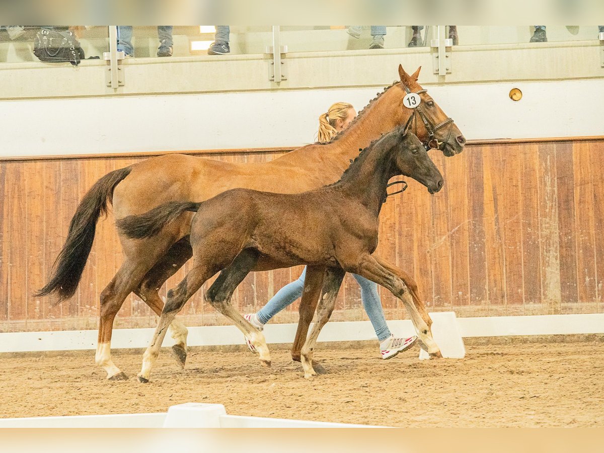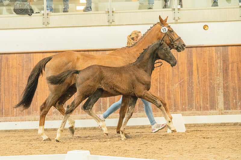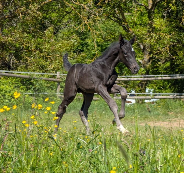 Nobel gezogener Rappe (2025) – Lord Europe x Lauries Crusador xx x Donnerhall Hengstanwärter von Lord Europe aus hochkarätigem Stutenstamm (StPrSt Loustic x Lauries Crusador xx x Donnerhall) Zum Verkauf steht ein im April 2025 geborener Hannoveraner Hengst, der in puncto Typ, Farbe und Pedigree keine Wünsche offen lässt. Als lackschwarzer Rappe mit schicker Zeichnung (Stern, Schnippe und viermal weiß gestiefelt) ist er bereits optisch eine Ausnahmeerscheinung. Herausragende Mutterlinie (StPrSt Loustic): Seine Mutter ist nicht nur eine Staatsprämienstute, sondern eine echte Leistungsträgerin: * Prüfungserfolge: Sie absolvierte ihre Feldprüfung mit einer Dressurbetonten Endnote von 7,50 und erhielt für ihren Galopp sowie die Rittigkeit (Fremdreiter) die Note 8,0. * Zuchtwert: Mit einem Dressur-Zuchtwert von 111 gibt sie ihre Qualität konstant weiter. * Erfolgreiche Nachzucht: Sie hat bereits sieben Fohlen gebracht, darunter zwei Hannoveraner Prämienstuten!! Ihre Söhne stammen von Top-Hengsten wie Secret, Rock Forever I und In My Mind ab. * Exterieur: Bei ihrer Eintragung überzeugte sie mit Noten von 8,0 für den Gesamteindruck, den Rahmen und die Qualität des Körpers. Pedigree-Highlights: * Vater Lord Europe: Verkörpert Modernität und Leistungsbereitschaft par excellence. * Muttervater Lauries Crusador xx: Der legendäre Vollblüter, der für Adel und Rittigkeit bürgt. * Absicherung: Über Donnerhall und Weltmeyer im weiteren Pedigree ist Loustico genetisch auf allerhöchstem Niveau abgesichert. Loustico zeigt sich in seinen Bewegungen stets bergauf mit viel Takt und natürlicher Erhabenheit. Ein Rohdiamant für den anspruchsvollen Dressurreiter oder als Aufzuchtobjekt für die Hengstvorauswahl. * Rasse: Hannoveraner * Farbe: Rappe * Geburtsdatum: 27.04.2025 * Geschlecht: Hengst * Vater: Lord Europe (Rhld) * Mutter: StPrSt Loustic (v. Lauries Crusador xx / Donnerhall)