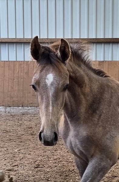 Sehr schickes Hengstfohlen von Bloomingdale x Dancier X Bergkristall x Volturno. Der Hengst ist am 14.5 geboren und wird Schimmel werden. Er hat sehr gute GGA, wobei der Schritt besonders hervorzuheben ist, korrekt gebaut und hoch im Blut stehend. Seine Mutter ist Staatsprämienstute, Seriensiegerin in Reitpferdeprüfungen, selbst hoch platziert in Geländepferdeprüfungen, Springpferdeprüfungen und Springprüfungen der Klasse L und dazu noch Hengstmutter und Halbschwester von drei gekörten Hengsten. Die letzten Fotos zeigen die Mutter