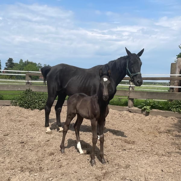 Das Hengstfohlen ist im April geboren und zeigt bereits großes Potenzial, etwas Besonderes zu werden. Mit drei super GGA und einem einzigartigem Pedigree, wächst hier ein ganz besonderer Hengst heran. Sowohl Mutter als auch Fohlen sind sehr pflegeleicht und super im Umgang. Die Stute selber wurde bereits hier auf dem Hof gezüchtet. Die Stute kann bei Bedarf ebenfalls erworben werden. Bei Interesse: 0176 52293530