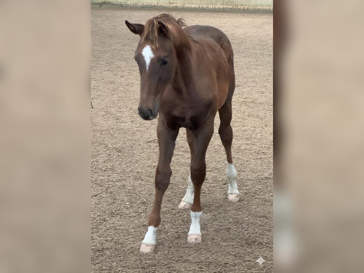 Dark Chestnut, 4x white markings, colt, yearling for the grand arena by Fidertanz Outstanding presence and a fabulous character! If you are looking for a beautiful, typy, uphill-built foal, this is a movement-rich colt for sale. He is equipped with excellent conformation, has a charming head with a beautiful, well-set neck, and is built very uphill with long, elegant legs. Overall, a modern, sporty foal with a fantastic hind leg—simply a dream. Very well-behaved, personable, and familiar with basic foal training. A wonderful temperament. The dam has already gifted me many fantastic foals, many of which are still in my possession. Unfortunately, I have to part with this wonderful foal now, as I simply have too many horses. No emergency sale! Siblings, presented by me as a better leisure rider, have achieved success up to M level. Full siblings aged 3, 4, and 5 years are available for viewing! The dam is a Warkant x Don Cavallo, a ZfdP State Premium mare with three top gaits. The sire of this colt is the top breeding stallion Fidertanz. I need not say much about him—he is renowned for his movement, rideability, and character. The internet is full of reports about him and his successful progeny, including numerous licensed sons. The pairing of this mare and stallion is simply perfect. I was so impressed with the foals from this cross that I have repeated the pairing for the fourth time. All of them are fantastic. The siblings can all be viewed. The colt is regularly handled by the blacksmith, dewormed on schedule, and receives high-quality mineral feed. If you value a well-raised foal, with good horse sense and proper care, this is the right place for you to find a new home for him. If I have sparked your interest with this promising future star, please feel free to contact me. I look forward to meeting you and introducing you to this young gentleman.