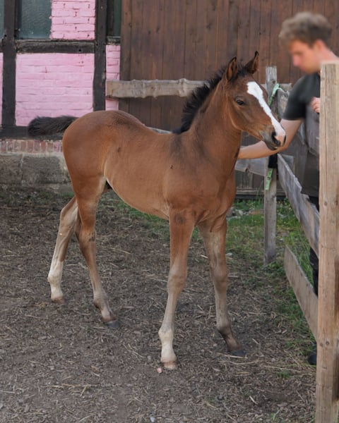 Beautiful colt by Duplexx – athletic, strong in movement, with outstanding versatile potential. The stallion has a lot of charisma, a correct conformation, and a very good, balanced gallop. Particularly noteworthy is the high Thoroughbred percentage in his pedigree, which promises endurance, athletic toughness, and elegance. Correctly built, alert, intelligent, and people-oriented. An ideal young horse not only for eventing but also for the ambitious show jumping. With appropriate training, he is sure to succeed in dressage as well as in all other disciplines! Due to his fundamental quality and friendly nature, he is extremely well suited for both professionals and amateurs. In excellent health, regularly dewormed, regularly shod, regularly handled, in optimal condition. From a loving private breeding with family involvement. We look forward to your interest and would be happy to show you the foal on site! Feel free to contact us via WhatsApp: +49 176 55323449. The sire Duplexx is an exceptional stallion with double talent. In addition to numerous successes in dressage and eventing competitions, he has mainly collected series victories in show jumping events. Age-appropriately, he is successful in both dressage and jumping up to class S. Duplexx is considered a shooting star among sires and is one of the most significant sons of Diarado. We expect that his rideability, willingness to perform, and athleticism will also be reflected in this foal! The dam of our foal is the state premium mare Noblesse by Nobre xx. She completed an outstanding mare performance test and was consistently rated with scores in the 8 and 9 range. Her sire Nobre xx is an elegant Thoroughbred and esteemed enhancer, ranking among the top 100 WBFSH eventing stallions. He completed an above-average stallion performance test with a jumping index of 121.47 (7th place). The maternal line traces back to the very successful Hanoverian line of Schligrune, which has produced numerous high-performing offspring. Hanoverian mare line of Schligrune: Approved stallions: Chivas (by Conteur, LG Celle), Barlöwe (by Bariton) Sport horses: Aribo (by Accord II, Grand Prix dressage), Belle de Jour (by Bariton, S-jumping), Campbell (by Catoki, 1.60m jumping), Caretan (by Caretello B, 1.40m jumping), Cascaja (by Coupe de Coeur, 1.45m jumping), Caspar (by Cornet's Prinz, 1.40m jumping), Centano (by Chalan, 1.50m jumping), Chintan Z (by Campion Z, 1.40m jumping), Clementine (by Catoki, 1.45m jumping), Como (by Catoki, 1.40m jumping), Dean Martin (by Dimaggio, Grand Prix dressage), Donath (by Dolentino, S-jumping), Don Quan (by Don Carlos, S-jumping), Grace WB (VA, by Grey Top, 1.40m jumping), Hospita van de Rostal (by Cicero Z, international 1.60m jumping), Noble Savage (by Noble Champion, international 1.50m jumping), Lalotta (by Linton, 1.40m jumping), Larry (by Landjonker, 1.50m jumping), Lotti Laptop (by Laptop, 1.40m jumping), Luna (by Lancer III, 1.40m jumping), Phigaro (by Pythagoras Z, 1.50m jumping), Sanja (by Sandro, 1.50m jumping), Seana (by Stolzenberg, 1.40m jumping), Speedy Boy (by Spitzbube, S-jumping), Diarado's Beste (by Diarado, 1.45m jumping), Quen-dira-t-on (by Quattro B, 1.40m jumping), Widerhall (by Wiesenbaum xx, S-eventing), Glint of Gold (by Grande, CCI3*).