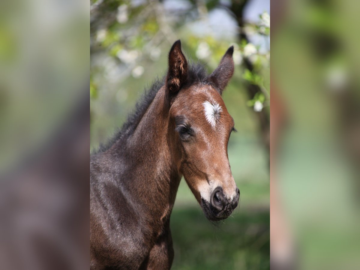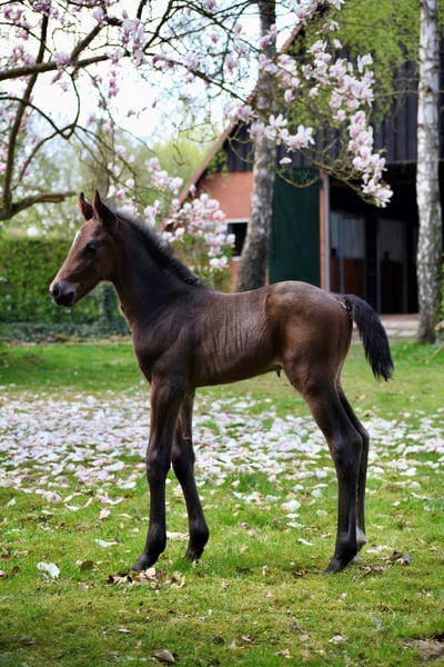 Offered is a very beautiful, long-legged colt with a brown coat, featuring a very noble head and powerful movements. He has a lot of temperament and knows how to impress with his charm.