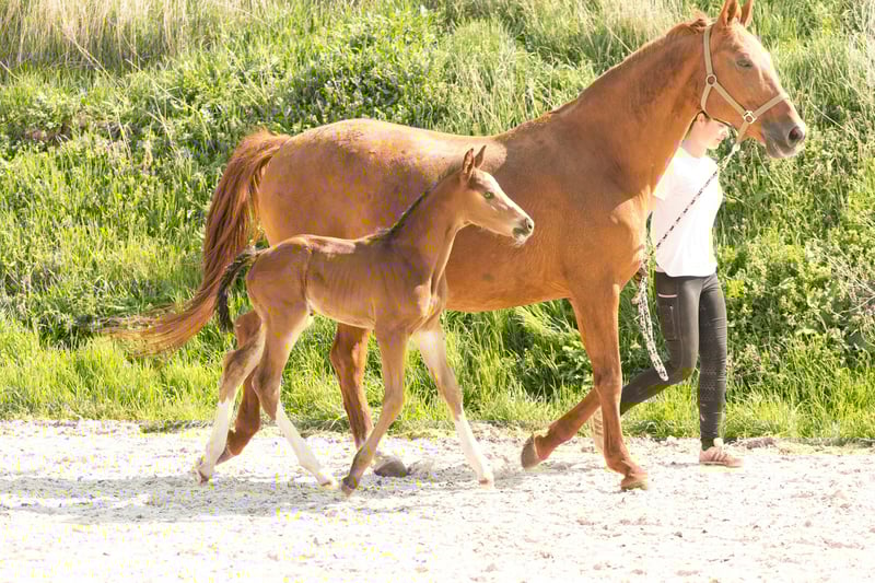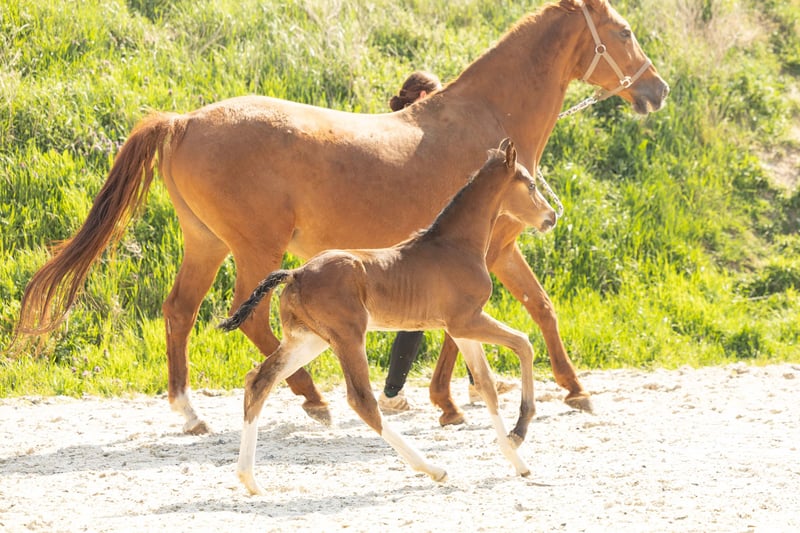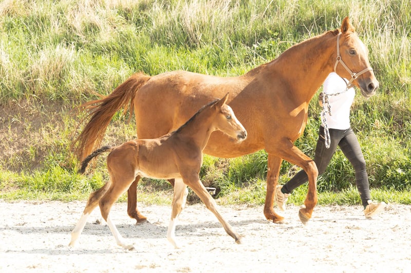 For sale is a long-legged Hanoverian stallion, born in 2025. This elegant bay impresses not only with his appealing stature but also with his prospective potential in show jumping. **Features:** - Breed: Hanoverian - Gender: Stallion - Year of Birth: 2025 - Color: Bay - Suitability: Show Jumping This year, we have 3 foals from his highly successful 3-star mother (see also other ad - stallion foal).