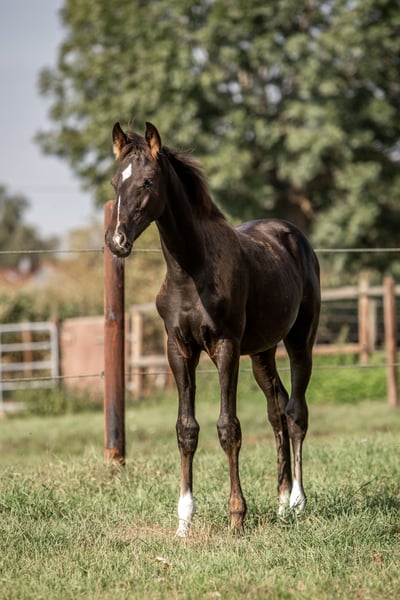 Dieser moderne, ausdrucksstarke Hengst von So Perfect aus einer bewährten Dancier-Mutterlinie überzeugt mit Typ, Bewegungsqualität und Perspektive. Aus dem direkten Mutterstamm stammen bereits mehrere erfolgreiche Nachkommen. Ein Halbbruder des Fohlens konnte sich in der Junior Tour in Spanien erfolgreich durchsetzen. Die Tochter der Mutterstute von Secret wurde zur Prämienstute ausgezeichnet, war Schausiegerin und ist in der PHD der Hannoveraner Zucht aufgenommen – ein klarer Beleg für die züchterische Qualität dieser Linie. So Perfect, selbst leistungsgeprüft und mit beeindruckender Eigenleistung, bringt Rittigkeit, Schwung und moderne Silhouette – bestens ergänzt durch die Rittigkeitsvererbung von Dancier, der als Donnersohn für Verlässlichkeit, Charakter und Bewegungsstärke steht. Ein hochinteressantes Fohlen für Zucht und Sport – mit genetischer Veranlagung für das große Viereck.