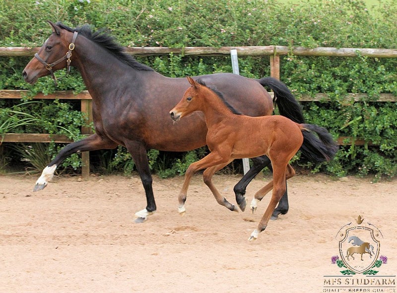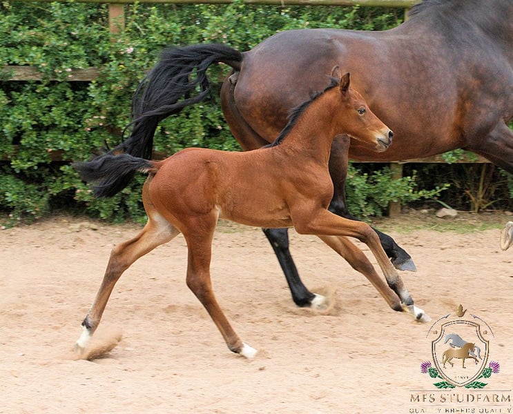 EXCLUSIVE, EXPRESSIVE, EYE CATCHING!! Sire ESCOLAR - "Just a few years ago, Escolar himself was part of the Olympic squad. He gives his offspring exactly the impressive uphill tendency, carrying power, enormous impulsion and striking strength of movement that have always characterized him in the arena." - Sandra Schürner The triumphal march of the stamp stallion Escolar remains unbroken. At less than 15 years of age, Escolar has already produced a whole dynasty of successful dressage horses that have won acclaim all over the world. Escolar has once again made the E-blood, which has stood for unshakeable performance for generations, the figurehead of elite sport and currently dominates modern horse breeding like few other sires. Whether at licensing, mare shows, remount tests or the big arena: Escolar's offspring impress everywhere with their incomparable quality. Escolar once again crowns this superiority with the current breeding value statistics: Once again, he leads the statistics with 177 points - and thus a clear gap to the ranks. Escolar already has more than 50 licensed sons, numerous licensed grandsons and countless state premium mares among his offspring. Escolar offspring were once again represented in all age groups at the championships in 2023. Endorphin was crowned Vice-Bundeschampion of the four-year-old riding horse stallions; Elastic won the bronze medal at the World Championships for Young Dressage Horses. Mein Ganzes Herz was named Champion Mare Dressage of the Holstein Verband. The nine-year-old Etro won team gold and individual bronze at the Asian Games in China under Anush Agarwalla; Espe carried the British rider Annabella Pidgley to individual gold and team bronze at the European Young Rider Championships and three Escolar offspring qualified for the final of the prestigious Nuremberg Burg Cup in Frankfurt: Escamillo, Escolux and Escalito. The youngsters also caused a sensation: Six sons were approved for the licensing in Vechta and Münster-Handorf and Escalerio MO advanced to the top price at the 66th Westphalian Online Foal Auction. The dam CHIRANA-UTOPIA is none other than the FULL SISTER to the KWPN Dressage Stallion SENSATION..........VIVALDI!! VIVALDI needs no introduction, the sire of multiple Champion Stallions, Champion mares, Grand Prix dressage horses and Champion foals, including the top stallion VITALIS. This dam line is extremely sought after by many dressage afficiados. The dam of CHIRANA is the Preferent and Prestatie mare RENATE-UTOPIA. CHIRANA herself has already produced multiple Premium and ELITE foals, with her eldest offspring by BORDEAUX in America being trained to Grand Prix level. Her daughter MFS ISABELLA UTOPIA by DAVINO VOD is competing successfully at Elementary Level and training at home in all the advanced movements. All her other offspring are in top dressage homes. Her colt of 2019 by Quantensprung was awarded Elite and Stallion Candidate, he went on to be Licensed by the Anglo European Studbook in 2024 with an overall score of 8.45!! MFS QUALITY ALWAYS WINS was 4th Place in October 2025 in the Consolation Young Horse Dressage Class at the Danish Young Horse Championships at Blue Hors. Her five year old daughter MFS CINDY UTOPIA was a Young Horse Qualifier in 2021 with a score of over 80%! MFS MISS UTOPIA is competing 2025 at Level 3 in Canada. This colt has everything you could possibly want for high level dressage or as a future stallion candidate. https://www.mfsstudfarm.com/mfsstudfarmforsale.html