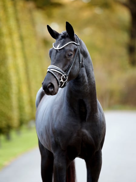 Einer wie Keiner! Hochattraktiver, imposanter Schönling von homogen hervorragender Grundqualität und toller Lernbereitschaft. Bereits nach ein paar Grundschulbesuchen in den Basics relativ gefestigt und mit schöner Einstellung im leichten Arbeitsbeginn absolut überzeugend. Ein rundum interessantes Nachwuchspferd für den besonderen Auftritt. Tüv gut.