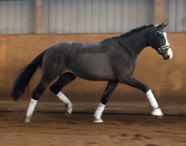 Hier ontwikkelt zich een top talentvol jong paard met 3 uitstekende gangen! Het uitmuntende stap – ruim over de rug, altijd ijverig en taktmatig – wordt aangevuld door een altijd bergop gesprongen, gevraagde galop en een uitstekende draf met enorme mechaniek, afdruk en schoudervrijheid. Zijn evenwichtige temperament en leergierigheid maken hem tot een ideale partner voor ambitieuze ruiters die op zoek zijn naar een getalenteerd jong paard. Er ligt een zeer goede keuringrapportage voor.