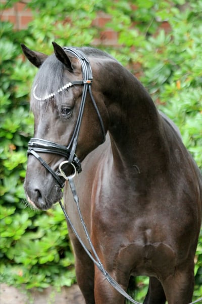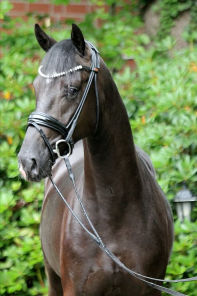 Dieser sympathische Rappe weiß auf Anhieb mit seinen vier weißen Socken zu gefallen. Auch im Bewegungsablauf bleiben keine Wünsche offen. Mit hervorragender Einstellung steht einer hoffnungvollen Karriere unter dem Reiter nichts im Wege. Das diese Qualitäten nicht von ungefähr kommen verrät ein Blick in sein Pedigree. Vater Secret gilt bereits jetzt als ein Ausnahmepferd mit noch nie dagewesener Vererbungsbilanz. Alleine auf der Weltmeisterschaft der jungen Dressurpferde in Ermelo 2024 stellt Secret 15 Teilnehmer, allein 10 davon im Klassement der sechsjährigen Pferde. Darunter den Vize-Champion der vierjährigen, den Gewinner der Bronzemedaille der fünfjährigen und die Vize-Weltmeisterin der sechsjährigen Dressurpferde. Auf dem zeitgleich stattfindenden Bundeschampionat gingen weitere 25 Nachkommen von Secret an den Start, darunter zahlreiche Finalteilnehmer und der Vizebundechampion der vierjährigen Stuten und Wallache. Die Zahl der gekörten und anerkannten Söhne ist laut FN auf 55 angestiegen darunter zahlreiche Prämienhengste und gefeierte Preisspitzen. Großvater Bon Coeur beeindruckt sowohl mit seiner eigenen sportlichen Karriere, als auch mit der seiner Kinder. Er selbst war Prämienhengst seiner Körung, Sieger seines 30-Tage-Tests und zweimaliger Vizebundeschampion. Seine Titel erstrecken sich zudem über den Weltmeyer-Preis 2018 und den Grande Preis 2023. Röntgenbilder liegen vor. Video auf Anfrage.