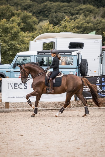 ¡Se vive una experiencia "campeona del mundo" en la Casa de Caballos de Celle! En tres ocasiones, Life Time FRH y Charlott-Maria Schürmann tuvieron el honor de participar en los campeonatos mundiales de caballos jóvenes de doma y, en su tercera participación, lograron una actuación soñada: el hijo de Livaldon, de madre Fürstenball, se coronó como el campeón mundial de caballos de siete años. La pareja caballo-jinete alcanzó su máxima expresión en la final, dominando con una puntuación impresionante de 93,40 % en la calidad básica (trote 9,0; paso 9,5; galope 9,2; elasticidad 9,5 y perspectiva 9,5) y un total de 84,129 puntos. Las actuaciones de este caballo de color oscuro, criado por Johannes Hesselink en Emlichheim, fueron simplemente espectaculares el año pasado, y Charlott-Maria Schürmann expresó su entusiasmo tras el éxito: «Fue una sensación increíble, y Life Time FRH dio lo mejor de sí. Es muy constante en la prueba, siempre puedo confiar en él. Es un verdadero showman en la pista, pero en general muy relajado.» Ya en 2019, este joven artista del movimiento fue subcampeón en la selección de sementales en Münster-Handorf, y también completó con éxito su período de 50 días de prueba en Schlieckau. Tras la prematura muerte de Livaldon, estamos muy orgullosos de poder mantener su legado a través de su hijo, Life Time FRH, en la Casa de Caballos de Celle.