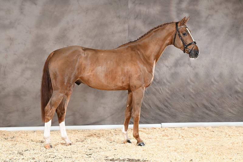 Ein weiterer Junghengst, der aus Hunnesrücker Aufzucht stammt und den Weg zum Landbeschäler mit Bravour gemeistert hat. Quigon ist herausragender Sportler, der in idealer Weise alle Eigenschaften eines klassischen Springpferdes in sich vereint. Der ausdrucksstarke Hengst verfügt über Substanz, ohne an Modernität zu verlieren. Daneben hat sein Interieur ein ausgeglichenes Temperament und allerbeste Wesenszüge. Diese für einen künftigen Spitzensportler wichtigen Eigenschaften stehen bei diesem Qualito I-Sohn in enger Verbindung zu einem guten Format mit perfektem Rahmen und einem hohen Maß an Korrektheit des Körperbaus. Die Grundgangarten sind insgesamt von sehr gutem Raumgriff und großer Losgelassenheit gekennzeichnet. Trab und Galopp verfügen zusätzlich über Kraft und Motorik. Sein gutes Interieur kommt ihm bei der Arbeit am Sprung sehr entgegen. Mit viel Übersicht und der gewünschten Elastizität entwickelt er auch jeder Situation einen perfekten Sprung. Durch diese tollen Eigenschaften konnte Quigon bereits im Herbst 2024 seinen Kurzveranlagungstest mit einer Wertnote von 7,91 beenden.