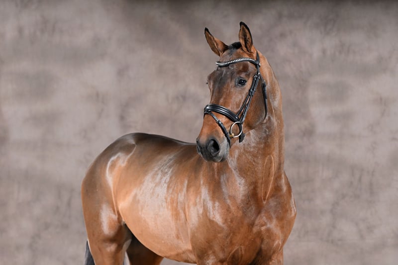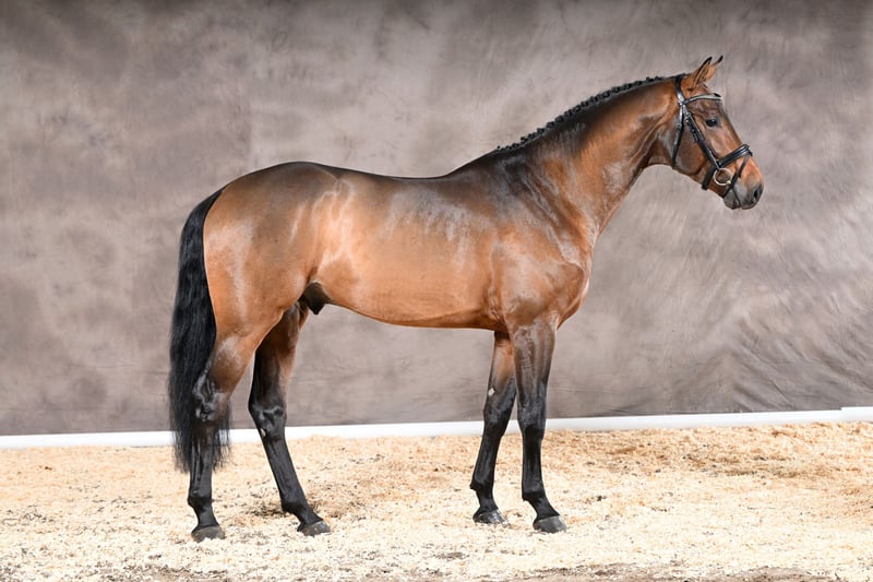 Nakandro emphasizes his outstanding potential with his already completed 50-day test. With a fantastic score of 8.38, this young stallion by Nairobi de Muze finished his examination. Especially regarding his willingness to perform and his temperament, this show jumping stallion fully convinced the commission. Additionally, his long legs, excellent canter, and athleticism combined with limitless ability make this stallion a special addition. Not only is Nakandro's genetics secured through his internationally successful father Nairobi de Muze, but his mother is the full sister to the Hanoverian Stallion of the Year 2022, "Stolzenberg." This young stallion is completed by the lineage of the neighbor I. This significant show jumping lineage has already produced successful horses at the 1.60m level, such as Lordan by Lordanos (Nayel Nassar/EGY) and Prinz by Perigueux (Hans-Dieter Dreher).