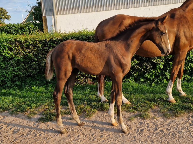 Typvolles großrahmiges Hengstfohlen mit viel Noblesse und hochsportlicher Eleganz vom Ausnahmehengst Dimaggio Black (Sporttestsieger 9,40). Er besitzt drei sehr gute Grundgangarten mit einem aktiven,Hinterbein. Das sehr korrekte langbeinige Fundament unterstreicht die ultramoderne edle Silhouette. Er ist super-brav und angehm im Umgang. Er ist Halbsbruder zu „Mount St. John Diamonds are Forever“ (von Diamond Hit, bestes 4-jähriges Dressurpferd 2020 in England und inzwischen Inter I ungeschlagen und Grand Pix erfolgreich). Nachkommen der Mutter Rheinita sind bereits erfolgreich in England, Österreich und Spanien. Die Urgroßmutter Faith Hill (StPrSt v. Florestan I) lieferte bereits hochpreisige Auktionsfohlen und bis zur S-Klasse erfolgreiche Dressurpferde. Ihr Vollbruder Freixenet wurde über die Verdener Auktion an Isabell Werth verkauft und von ihr erfolgreich in der Klasse S vorgestellt. Die UrUrgroßmutter ist Vollschwester zum Bundeschampion Boccacio (v. Bolero, 4j Reitpferde), die UrUrUrgroßmutter ist Vollschwester zum Celler Landbeschäler Grunewald (v. Grande x Duellant). Aus diesem hocherfolgreichen Stutenstamm der „Antipathie“ stammen internationale Sportpferde sowie Bundeschampionatssieger (Fürst Khevenhüller, H. Langehanenberg / Rospoli, J. Disterer / Lou, Franke Sloothaak / Duke of the Dance, H. Weber, etc.). Außerdem brachte diese Linie gekörte Hengste wie z.B. Royal Blend (Celle, Prämienhengst, Dres. S**), Don Bedo (Warendorf, Siegerhengst) oder Shakespeare in Love (PB, Dres. S**). Wer für Sport und/oder Zucht etwas besonders sucht hat mit diesem Hengstfohlen alle Möglichkeiten.