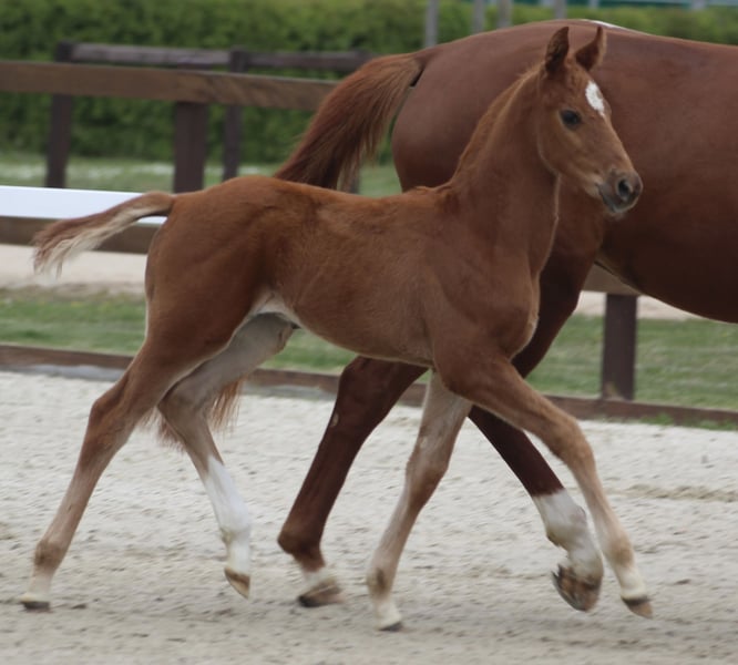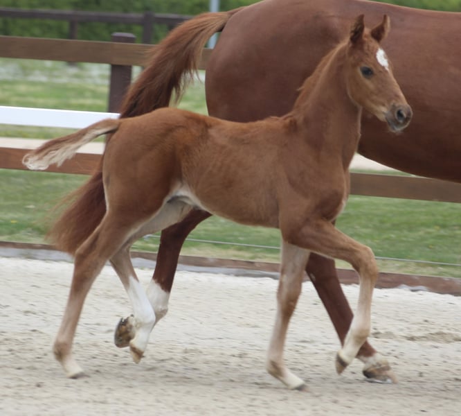 Wir geben unser am 10.03.26 geborenes Hengstfohlen ab Semptember ab, es gibt auch die Möglichkeit die Mutterstute mit zu erwerben. Die Mutter ist eine Secret X Le Primeur X Weltmeyer. Rocking Secret ist Rienzi (Raphael) X Bolero X Secret. Rocky kennt das Fohlen ABC, fährt problemlos Hänger, war ebenfalls schon bei einer Fohlenauswahl. Die Halbschwester ist bereits M-platziert, Rocky selbst zeigt im Freilauf schöne schwungvolle Grundgangarten.