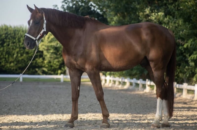 🐴 Bon Withro – Dressage Horse with an Exceptional Character and Sporting Quality We are offering the impressive dressage gelding Bon Withro, a horse that combines athletic performance with an outstanding temperament. An absolutely reliable partner for discerning riders who value quality, rideability, and future potential. Basic Data Name: Bon Withro Age: 10 years, gently and professionally backed at 4.5 years Height: approximately 16.1 hh Color: Chestnut Pedigree: Ben Kinsley × His Highness Pedigree & Bloodlines His sire, Ben Kinsley, is known for modern dressage horses with above-average movement quality, expression, and willingness to perform. His dam, His Highness, impresses with rideability, an excellent temperament, and her inheritance of reliability and strong character. Sporting Record - Successful in dressage competitions at A and L levels, with scores up to 7.9 - Winner at L level - M*-placed with scores up to 67%, achieving 2nd and 3rd place on the bit with scores up to 7.2 Temperament & Handling Bon Withro presents himself as a truly exceptional horse: - Extremely well-behaved, reliable, and fearless - Very easy to handle, even in daily interactions - Can be left alone in the stable without issues - Very social and compatible within the herd - Absolutely trailer- and load-trained, even when handled alone - Travel stress-free by trailer at any time - Routinely veterinary care in the last five years, including vaccinations Movement & Training - Elegant appearance with a sporty presence - Very good basic gaits with quality, rhythm, and expression - Always motivated, honest in work, and reliable in training Suitability A horse for ambitious amateurs and professionals with a view to further sporting development. Also ideally suited as a higher-level confidence-building partner for motivated young riders seeking a safe and willing partner. Health A veterinary certificate is available and can be provided upon request. 📍 Location: Hamminkeln, 46499 This extraordinary horse impresses with performance, character, and charisma. We look forward to your serious inquiry and are happy to provide further information, photos, or videos.