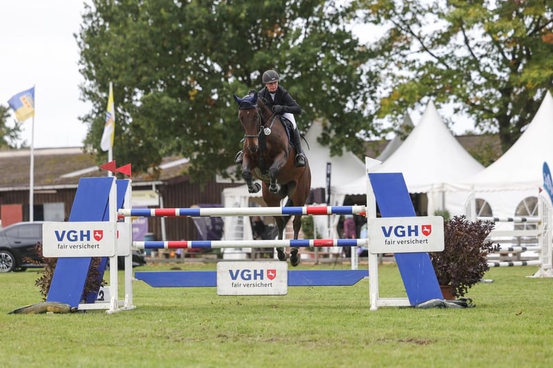 Stolzenau to 9-letni, ciemnogniady wałach (1,73 m) po Stolzenberg, z matką Fighting Alpha. Już osiągnął 140 cm i ma na swoim koncie wiele innych miejsc na podium. Sam go sam wytrenowałem od poziomu A do S w skokach przez przeszkody. Stolzi wyróżnia się na parkurze dobrą manierą, talentem i niezawodnością. W codziennej pracy w ujeżdżeniu jest raczej spokojny, ale na zawodach w skokach pokazuje ambicję i świetne nastawienie do przeszkód, z wyraźnym, ale kontrolowanym podejściem do skoku. Jest więc idealny także dla juniorów lub amatorów. Jeśli szukasz ambitnego konia skokowego z sercem, charakterem i odwagą, to jest właśnie on. Chętnie odpowiem na telefonie.