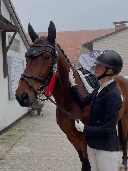 Beautiful gelding with an excellent temperament Multiple competition placements in riding horse classes from Wb up to A dressage. Recently, he won a riding horse class. He is comfortable for children to sit on and easy to ride, performing wonderfully at competitions. He is experienced in terrain riding, lunging, pole work, riding with a halter, and riding without a saddle. I can easily imagine him as a family horse, where he is supported by adults and ridden by children. I would like to sell him from our riding school to a loving private home where he will receive plenty of attention. He loves being groomed. He is also well-behaved on the longe line with unbalanced beginner riders. Trial ride €20, including pre-riding. For serious inquiries, please call or WhatsApp at 015204547603.