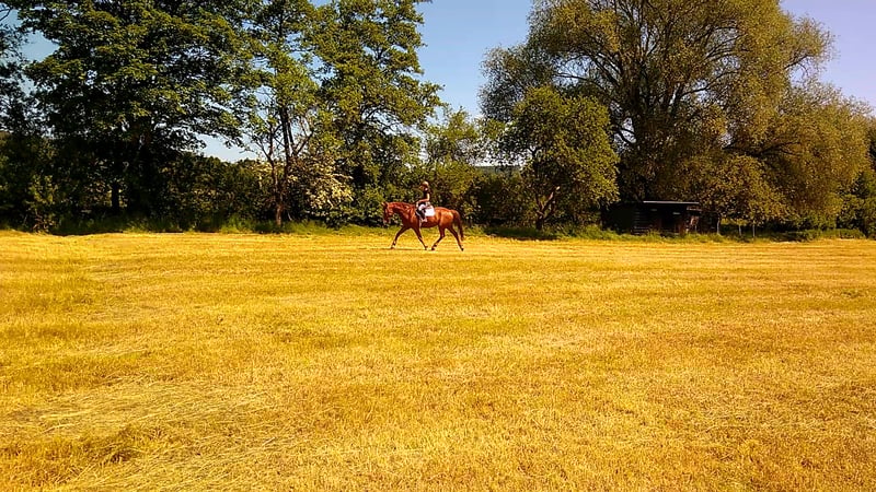 Hannoveraner Wallach, geb. 2016, Fuchs, mit einem Stockmaß von ca. 175 cm – ein eleganter und vielseitiger Freizeitpartner. Durch den langen, breiten Rücken (bei schmaler Brust und Schulter) und die große Aufwärtsgaloppade als Voltigierpferd denkbar. Dieser bildschöne Hannoveraner überzeugt durch sein sehr menschenbezogenes Wesen und seine hervorragenden Grundgangarten bei hoher Rittigkeit und ruhigem Temperament. Er ist bestens geeignet für abwechslungsreiche und sportliche Ausritte alleine oder in der Gruppe in vorderer oder hinterer Position sowie Dressur (modernes sensibles Maul, daher sollten ungeübtere oder härtere Reiter zum Sidepull greifen). Völlig entspannt sogar bei bellenden Hunden. Probeweise auf einem Turnier gewesen, wo er sehr brav war. Idealer Lehrmeister für klassisches, handunabhängiges Dressurreiten, da er viel verzeiht, aber dennoch rückmeldet. Hatte mit Außengalopp, Trab-Halten und einhändiger Zügelführung begonnen, aber aktuell wegen Erkrankung der Reiterin Fokus auf Gelände und Sitzlongen. Er hat Freude am Springen und eine gute Manier, aber dort wenig Mut, sodass er für das Springen einen sicheren Reiter benötigt. Bevorzugt Offenstallhaltung. Er kommt mit allen Pferden zurecht und schätzt viel Bewegung sowie Spielpartner, neigt nicht zu Verletzungen. Muskulär bedingtes Shivering hinten, welches mit Training und Geduld stetig besser wird. Trotz seines gutmütigen Charakters ist er ein Pferd und kein Fahrrad oder Sofa. Durch die großen Gänge fordert und fördert er die Fitness des Reiters, der bereit sein sollte, diese zu erwerben oder zu halten.