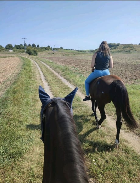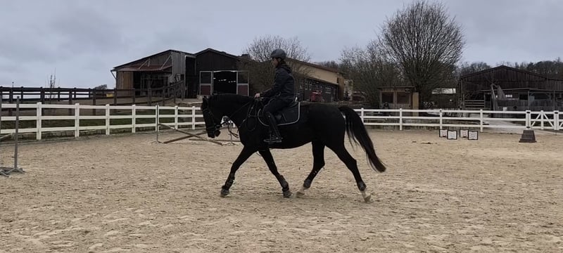 Prince Antares – honnête, fiable, tout simplement agréable à monter Prince Antares, hongre hanovrien né en 2015 (par Fürst Nymphenburg – MV Likoto XX, mère élite prämée), est un étalon noir de 1,66 m environ, au physique compact et au confort de selle appréciable. C’est un cheval sur lequel on peut compter. Pas de drama, pas de discussion, mais un mental clair, facile à monter et tout simplement sincère. Il se montre fiable avec différents cavaliers et se laisse également manipuler par des cavaliers moins expérimentés, car il réfléchit et ne travaille pas contre l’humain. Il avance agréablement, sans devenir nerveux. Des vidéos disponibles sur WhatsApp. Dressage : - Niveau solide E/A - Saut : parcours de petite hauteur en E - Terrain : très sûr, aussi bien seul qu’en groupe, devant et derrière Même sans beaucoup d’efforts, il procure du plaisir. Que ce soit en manège ou en extérieur. Caractère & comportement : - Amical, proche de l’humain, équilibré - Ne donne pas de coups de pied, ne mord pas - Respectueux de la ferrure et du van - Facile lors des visites chez le vétérinaire Santé : - Opération de puce électronique – après, suffisamment de temps pour la convalescence - Non usé, monté en douceur - En pleine forme et endurant - Je peux fournir d’anciennes radiographies, tout est en ordre Je le possède depuis ses débuts, directement du éleveur, ce qui rend la vente difficile pour des raisons personnelles. Je souhaite pour lui une place où il sera apprécié et pas simplement « utilisé ». Une personne adaptée est plus importante pour moi que le dernier euro. Prix : 12 500 € VB Possibilité d’essayer après accord. Une contribution pour l’essai sera demandée afin de couvrir les frais liés au déplacement, remboursée lors de la signature du contrat.
