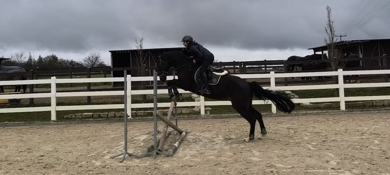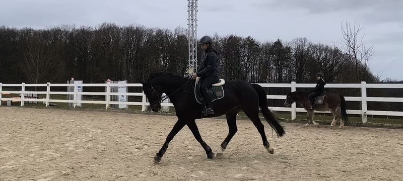 Don Aldebaran – Talent, Cœur et Caractère Troisième poney hanovrien né en 2015, environ 1,68 m (par Don Index – MV : Royal Blend). Un cheval avec de très bonnes allures de base, beaucoup de potentiel au saut et une tête vive et intelligente. Un partenaire pour les cavaliers qui ont du feeling et aiment réfléchir. Et un cheval qu’on apprécie car il travaille avec engagement. Depuis son débourrage, directement du naisseur, entre mes mains. Don est extrêmement apprenant et sensible à la selle, accepte rapidement les aides et aime travailler. En même temps, il est délicat. Avec une monte juste et calme, il montre tout ce qu’il a dans le ventre. Si vous êtes à ses côtés, vous obtenez un cheval sincère, qui donne de la performance et souhaite évoluer. Vidéo disponible via WhatsApp. Éducation : - Dressage sur un niveau solide en E - Saut en E, avec beaucoup plus de potentiel que ce que sa lignée laisserait penser - Terrain : fiable, monte seul ou en groupe, à l’avant comme à l’arrière Caractère : - Très intelligent et sensible - Curieux et attentif - Fin au mors, réagit rapidement aux aides. Pas un cheval grossier, mais un cheval qui souhaite être monté de manière juste Comportement : - Facile au ferrage - Facile à charger - En daily, sans souci - Ne piétine pas, ne mord pas - Amical et attentif Santé : - 3 opérations de coliques, suivies d’une longue convalescence et d’un redressement progressif - Non usé, monté en douceur - Sensible au niveau de l’estomac - Montre des signes de koppen → Actuellement stable, mais doit être bien géré - Anciennes radiographies disponibles, tout est conforme Je le possède depuis son débourrage, directement du naisseur, aussi la vente n’est pas facile pour moi pour des raisons personnelles. Je souhaite pour lui une place où il sera réellement apprécié et non simplement « monté ». Une personne qui lui correspond est plus importante pour moi que le dernier euro. Prix de vente : 11 000 € VB, en raison de ses koppen, sous sa valeur Essai possible sur rendez-vous. Cependant, je demanderai une participation aux frais d’essai pour limiter le tourisme équestre. Elle sera remboursée lors de la signature du contrat.