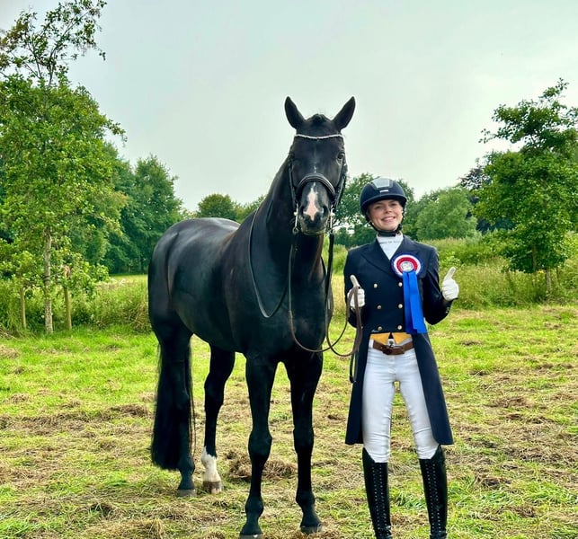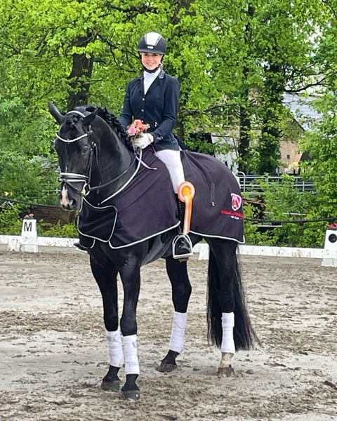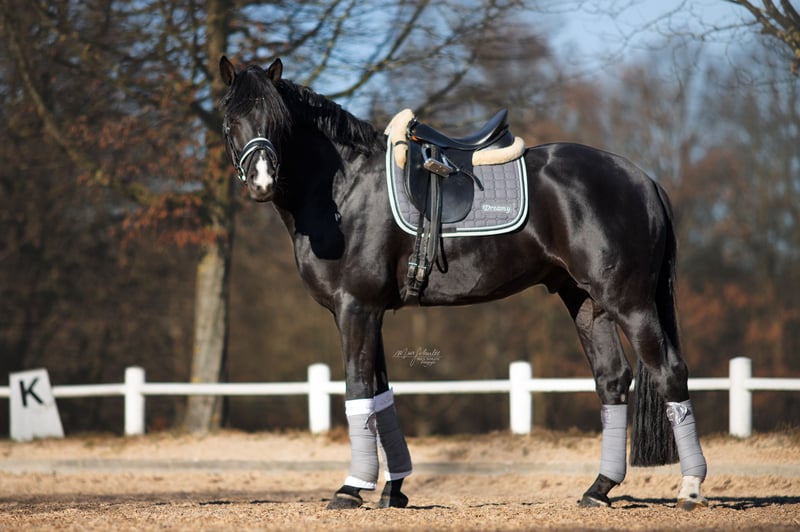 Dreamy, the name says it all, as he is not only stunningly beautiful but also incredibly easy to ride and sensitive in the contact. I purchased Dreamy as a two-year-old directly from the breeder in a rough condition and broke him myself. Over our nine years together, I have trained him from an amateur level up to Grand Prix independently and shown him at competitions. He confidently masters all movements up to S** level, but also learns piaffe, passage, and one-tempi changes playfully. At competitions, it took him a little time to present himself relaxed, and we experienced a few wild young horse tests, but from M level / age 7 onwards, he became more confident and calm: we won M* with an 8.0 and M** with an 8.1. The following year, he achieved his first S placements with scores up to 70%. He is therefore considered a perfect amateur horse! :-) Dreamy is sensitive and prefers to have a consistent handler; he is quite the “one-man horse.” He doesn’t like changing riders daily but is an excellent teacher who can teach his rider even the most difficult movements. He loves being groomed, preferably thoroughly and for a long time. He enjoys being outside and prefers going out with a buddy. He likes the outdoor arena better than the indoor, knows the gallop track and hacking, finds poles totally boring, and clearly prefers the bridle over the bit. In short: he is a very special horse to me, super rideable, and I am very grateful for the years we shared. Dreamy is being sold due to personal changes and the resulting lack of time. I simply won’t be able to give him the attention he deserves anymore. A current X-ray report is available. If you are interested, I look forward to receiving a message with a phone number. A trial ride without prior “getting to know each other” by phone is not an option for me, as I am not looking for just any new owner for Dreamy but for a family where he can hopefully stay “forever.”