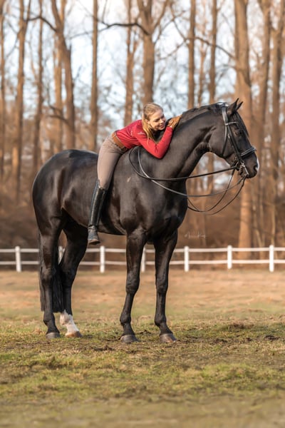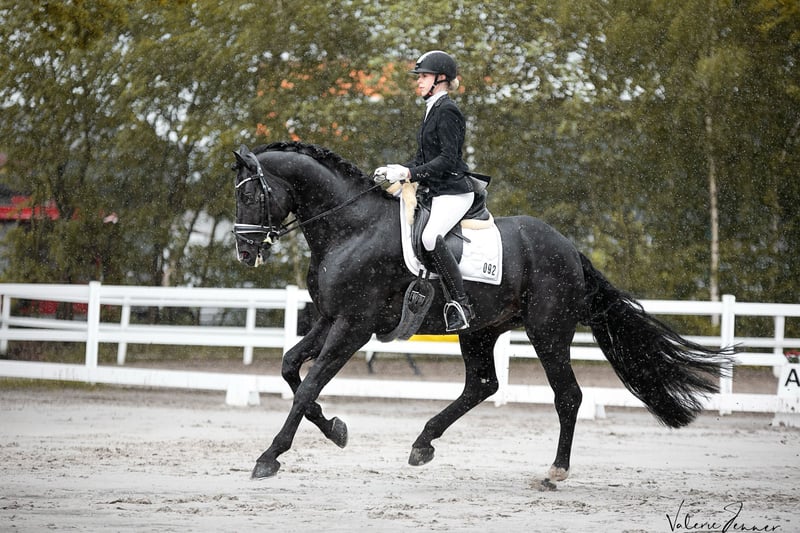 Dreamy, his name says it all, as he is not only stunningly beautiful but also exceptionally light in the bit and refined in contact. I bought Dreamy as a two-year-old directly from the breeder in a rough condition and broke him myself. Over our nine years together, I have trained him as an amateur up to the advanced level and competed with him. He confidently masters all movements up to S** level, but also learns piaffe, passage, and one-tempi changes in a playful manner. At competitions, it took him some time to present himself relaxed, and we experienced a few wild young horse tests, but from M level at age 7, he became more confident and calm: we won M* with an 8.0 and M** with an 8.1. The following year, he achieved his first S placements with scores up to 70%. He is therefore considered the perfect amateur horse! :-) Dreamy is sensitive and prefers a strong, consistent handler. He is quite the “one-man horse,” not keen on changing riders daily. However, he is an excellent teacher who can teach his rider even the most difficult movements. He loves being groomed, preferably thoroughly and for a long time. He enjoys being outside and prefers to go out with a buddy. He likes the outdoor arena more than the indoor, knows the gallop track and hacking, finds poles totally boring, and clearly prefers the bridle over the bit. In short: he is a very special horse to me, very rideable, and I am very grateful for the years we shared. Dreamy is being sold due to personal changes and the resulting lack of time. I simply no longer have enough time for him. Of course, a current X-ray health certificate is available. If interested, I look forward to receiving a message with a phone number. A trial ride without prior phone “introduction” is not an option for me, as I am not looking for just any new owner for Dreamy but for a family where he can hopefully stay “forever.”