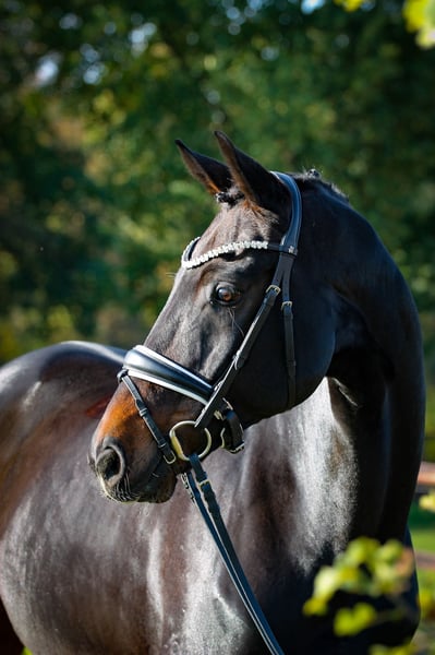 Lupin was born with us and was raised with a lot of love. He is a very typey and blood marked gelding with very good gaits. At the end of his 4th year we gave him to our rider in very trusted hands. Since then, she has been the one who has turned him into a great dressage horse. In keeping with his age, he has won everything you can win. Trained up to medium ** level dressage and trained up to advanced (S) level, he has everything a future rider could wish for. He is a really great young horse for all ambitious dressage riders or leisure riders. Loves bananas and needs his cuddles. We wish for our "Lupin" a loving person who will go through thick and thin with him and give him a final place. We are therefore looking forward to meeting great people who would like to get to know him. A very good TÜV incl. neck is already available.
