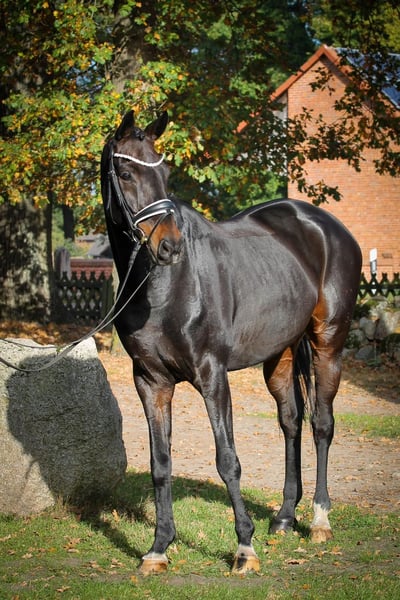 Lupin è nato da noi ed è stato cresciuto con tanto amore. È un castrone molto tipico e di sangue con ottimi movimenti di base (GGA). Ha avuto bisogno di svilupparsi fisicamente. Alla fine dei suoi 4 anni, lo abbiamo affidato a mani molto fidate della nostra addestratrice. Da quel giorno, è stata lei a trasformarlo in un fantastico cavallo da dressage. In base alla sua età, ha vinto tutto ciò che si può vincere. Addestrato fino al livello di dressage di classe M ** e preparato fino alla classe S, ha tutto ciò che un futuro cavaliere potrebbe desiderare. È un ottimo cavallo giovane per tutti i cavalieri da dressage ambiziosi o anche per i cavalieri amatoriali. Ama le banane e ha bisogno delle sue coccole. Desideriamo per il nostro "Lupin" una persona amorevole che lo accompagni nei momenti belli e brutti e gli offra una casa definitiva. Siamo quindi entusiasti di incontrare persone meravigliose che vogliono conoscerlo. Un ottimo controllo veterinario, incluso il collo, è già disponibile.