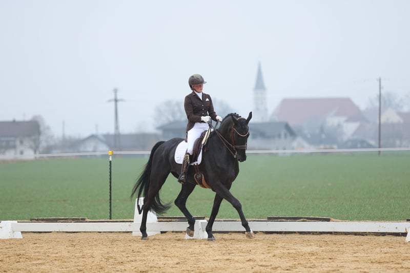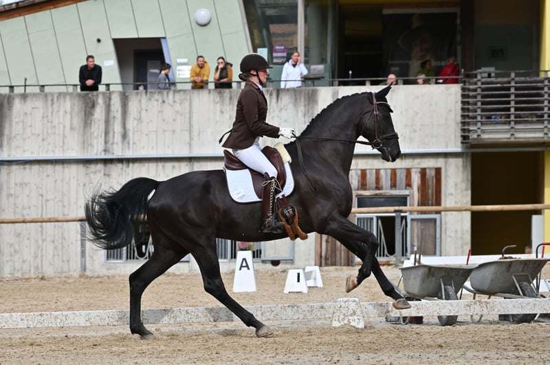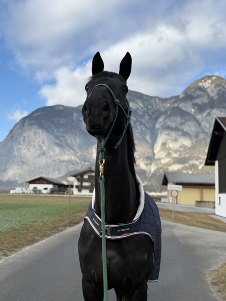 We are offering our talented dressage horse for sale with a heavy heart due to lack of time: 🐴 Name: Santorini 📅 Year of Birth: 2014 📏 Height: 17.5 hh 🧬 Breed: Hanoverian 🎓 Training Level: Dressage up to M, beginning series changes and pirouettes 🌟 Special Features: Excellent basic gaits, eager to learn, people-oriented, and very affectionate. Description: This elegant black gelding impresses with his commanding presence, expressive movements, and excellent rideability. He is competition-ready, particularly strong in traverses, and has a secure walk, clear rhythm in trot, and expressive canter. He is also a real sweetheart in handling, always alert and never mean! In 2023, he had an accident where he tore the superficial flexor tendon on his left hind leg. However, this does not affect him in any way! In Germany, he has achieved placements up to M** level at renowned competitions. In Austria, he has placements in LM and LP classes. He is farrier- and loading-friendly. Ideal for: Ambitious competitive riders, transitioning from youth classes, or recreational riders with high standards seeking a reliable and motivated horse. He is not a beginner’s horse, as he enjoys being challenged and developed! 📍 Location: Kematen, 6175 💰 Price: €30,000 negotiable A €20 fee will be charged for the trial ride, which will be credited upon purchase.