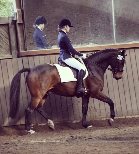 Aus Zeitmangel durch mein Studium muss ich leider meinen hübschen, toll gebauten Wallach mit viel Go und guten Grundgangarten in liebevolle Hände abgeben. Doorigo hat körperlich viel zu bieten, kann aber auch hin und wieder mal etwas nervös sein. Um seine Qualitäten voll auszuschöpfen, benötigt er einen souveränen Menschen, der sich nicht verunsichern lässt und ihm Ruhe und Sicherheit vermittelt. Dieser Text ist sehr umfassend und ehrlich formuliert, da ich mir für Doorigo ein passendes und langfristiges neues zu Hause wünsche! 1. Training und Haltung: Doorigo war acht Jahre Teil unserer Familie. Er wurde in dieser Zeit durchgehend bewegt und Trainiert, der Hauptfokus lag hierbei auf dem Dressurreiten, (Doppel-) Longen und Bodenarbeit, Spaziergängen und auch Ausritten. Dressur läuft er auf sicherem A- Niveau und beherrscht einige L-lektionen. In der Halle bin ich häufig auch ohne Sattel und ab und zu auch mit Halsring geritten, das macht er sehr gut mit. Er wurde stets mit Mineralien, guter Heuqualität und täglichem Auslauf versorgt. Die Hufe wurden regelmäßig vom Hufschmied bearbeitet. Der Sattel wurde regelmäßig angepasst, so dass sich die Rückenmuskulatur immer bestmöglich entwickeln konnte. In vertrauter Umgebung läuft er sehr entspannt und ist auch Anfängergeeignet, in unbekanntem Terain benötigt er allerdings einen Reiter, der ihm viel Sicherheit geneben kann und sich evtl. auch mal die Zeit nimmt, ihm erst einmal vom Boden aus die Dinge zu zeigen. Beim Springen beherrscht er kleine Gymnastsprünge, Dressur ist jedoch seine Hauptdisziplin. 2. Ausreiten und Gelände: Ausreiten ist bei ruhigem Wetter mit sicheren Begleitpferd gut möglich, wenn die Reiterin ihm Vertrauen vermittelt und sich in "stressigen" Situationen nicht verunsichern lässt. 3. Hufschmied: keine Probleme 4. Verladen: Doorigo wurde von mir ab und zu für Ausflüge oder Auswärtstranig verladen, ich habe ihn auch manchmal einfach so zur Übung ohne aktives losfahren Verladen, er kennt es also, braucht aber auch hier Ruhe und Sicherheit von der begleitenden Person. 5. Turnier: Wir waren mit Doorigo ein paar mal auf Turnieren. Dabei hat sich herausgestellt, dass dies für ihn eher Stress als Spaß bedeutet. Es gab zwar auch Prüfungen in denen er sich sehr gut gemacht, hat, allerdings ist mir primär wichtig, dass ein Pferd Spaß an den Dingen hat, die es tut, daher eignet er sich nicht für Reiterinnen mit vorrangigen Turnierambitionen. Ein kleines Hofturnier oder dergleichen dürfte aber kein Problem sein. Melde dich doch gerne bei weiteren Fragen! Email: Lisa.kari763@gmail.com