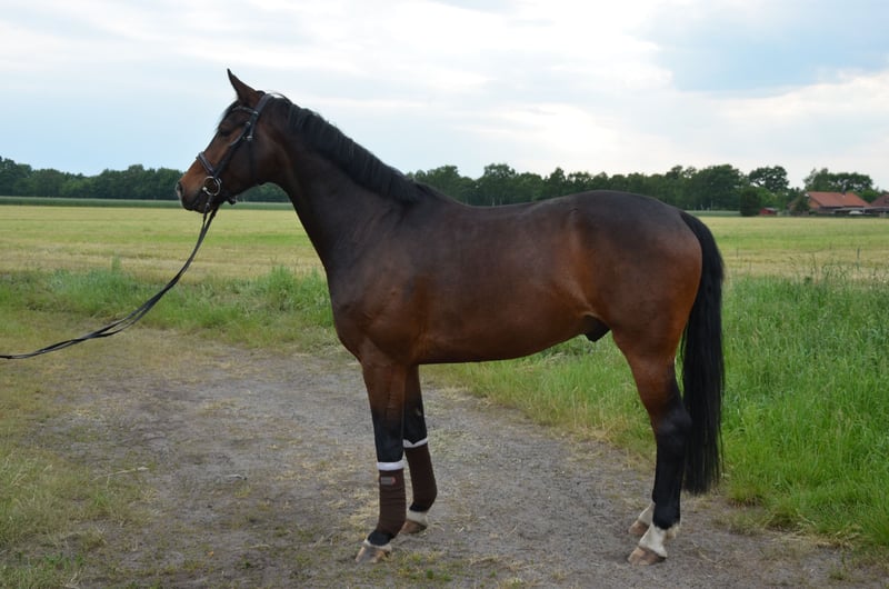 Due to time constraints from my studies, I unfortunately have to part with my beautiful, well-built gelding with a lot of go and good basic gaits. Doorigo has a lot to offer physically but can also become tense quite easily. To fully utilize his qualities, he needs a confident person who is not easily unsettled and can provide him with calmness and security. This text is very comprehensive and honestly formulated, as I wish for Doorigo to find a suitable and long-term new home! 1. Training and Care: Doorigo has been part of our family for eight years. During this time, he has been consistently exercised and trained, with the main focus on dressage riding, lunging, groundwork, walks, and also trail rides. In dressage, he performs at a secure A level and masters some L tests. In the arena, I often ride him without a saddle and occasionally with a neck ring, which he handles very well. He has always been provided with minerals, good quality hay, and daily turnout. His hooves have been regularly attended to by the farrier. The saddle has been regularly adjusted to ensure that his back muscles can develop optimally. In a familiar environment, he is very relaxed and is also suitable for beginners; however, in unfamiliar terrain, he requires a rider who can provide him with a lot of security and perhaps even takes the time to show him things from the ground first. In jumping, he masters small gymnastic jumps but requires a secure lead. Dressage is, however, his main discipline. 2. Trail Riding and Terrain: Trail riding is possible in calm weather with a safe companion horse, as long as the rider conveys trust to him and does not become unsettled in stressful situations. 3. Farrier: No problems. 4. Loading: I have occasionally loaded Doorigo for outings or external training; I have also sometimes loaded him just for practice without actually going out, so he knows it but also needs calmness and security from the accompanying person. 5. Competitions: We have taken Doorigo to competitions a few times. It has become clear that this causes him a lot of stress and little enjoyment. While there were tests in which he performed well, it is primarily important to me that a horse enjoys what it does, so he is not suitable for riders with primary competition ambitions. A small local competition should not be a problem, though. If you enjoy slowly and playfully exploring new realms without pressure and like to ride a horse with great potential, you could be the right person for him. Feel free to contact me with any further questions! Email: Lisa.kari763@gmail.com
