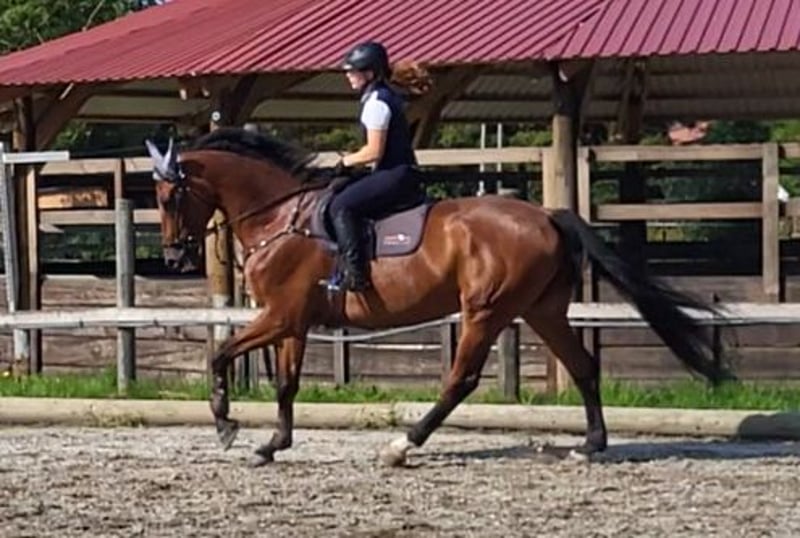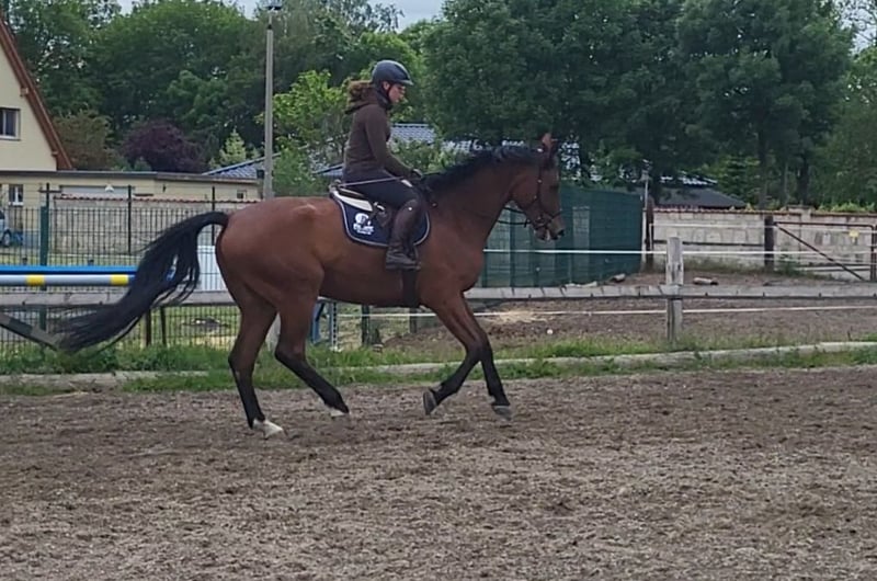 For sale due to herd reduction, our beloved Paul. He is a tall, well-built gelding who, despite his size, is very comfortable to ride and agile. He brings joy to his rider every day and always wants to do his best. With us, he is a family horse, and anyone can ride him without any issues. He is well-trained in dressage, mastering all lateral movements, and is very nice to ride on a double bridle. He is willing and reliable, making him an excellent horse for learning. He has also taught beginners to trot lightly on the lunge line. His greatest pleasure is jumping, where he always supports his rider. He possesses a lot of quality and talent in this discipline. Cross-country obstacles are no problem for him either. If you are looking for a buddy with a sportive attitude, he is the perfect match. We could also very well imagine him as a vaulting horse, as he has a wonderfully steady, collected canter and provides plenty of space for movement. It is especially important to us that he receives a great task, is loved, and appreciated. Unfortunately, we cannot keep them all.