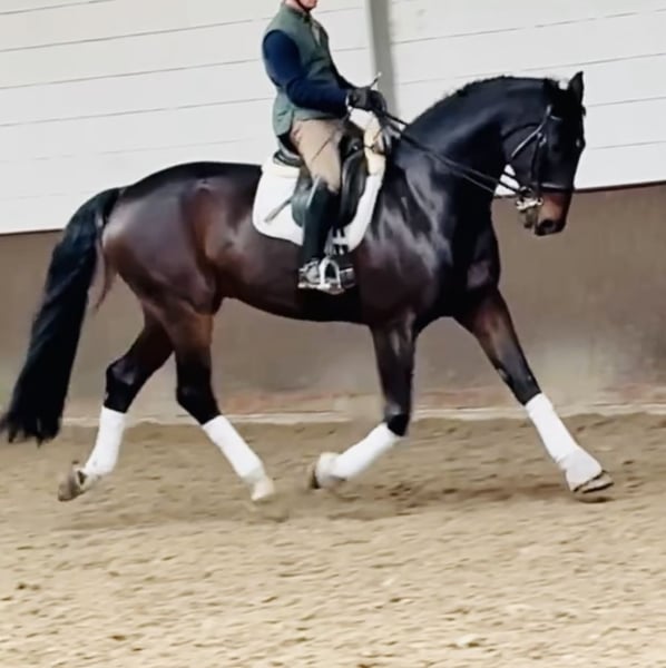 This stunning gelding is looking for a new environment to showcase his talents. With excellent bloodlines (Fidertanz x De Niro) and a consistent work ethic, he strives to do everything right. He is particularly known for his sweet and honest character. Additionally, he possesses solid basic gaits. Farrier and loading are no problem. Approximately 1.85 meters tall. Current TÜV available without any findings. Five years old, qualified for the Bundeschampionat, reaching the small final. Successfully presented in dressage class M and confidently ridden in S dressage, with S dressage training underway. He is an absolute reliable partner. Videos can be sent upon request.