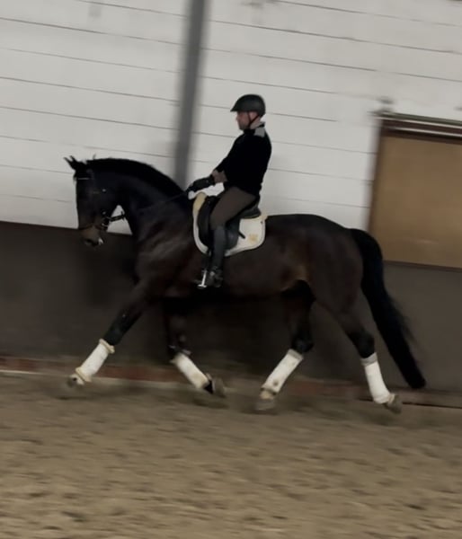 Dieser wunderschöne Wallach sucht seinen neuen Wirkungskreis. Mit bestem Blut (Fidertanz x De Niro) und stetiger Arbeitsbereitschaft will er alles richtig machen. Er zeichnet sich besonders für seinen lieben und ehrlichen Charakter aus. Zudem bringt er Solide Grundgangarten mit. Schmiede und Verladefromm. Ca. 1,85 m groß Aktueller Tüv ohne Befunde vorhanden 5 jährig Qualifikation zum Bundeschampionat bis hin zum kleinen Finale M Dressur sicher und vorgestellt S Dressur im Training Er ist ein absolutes Verlasspferd. Video kann auf Anfrage verschickt werden