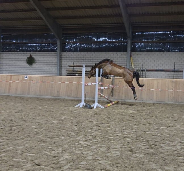 Met pijn in het hart bied ik mijn ruin uit 2011 te koop aan, omdat wij niet meer goed bij elkaar passen. Destijds heb ik hem gekocht als aangespannen paard en heb ik veel van hem geleerd. Toch sluiten mijn wensen niet meer aan bij zijn mogelijkheden. Voor hem is het wedstrijddraaien en het rijden met de trailer te stressvol, wat ik hem graag wil besparen. Daarom verkoop ik hem als recreatief paard met wedstrijdervaring. In de dressuur werken we aan de L-competities, terwijl hij al solide op A-niveau traint. In het springen springt hij goed door een E-parcours, maar springt ook al enkele sprongen op A-/L-niveau. Tijdens het vrijspringen toont hij zijn talent en springt hij tot nu toe 1,15 meter. Hij is een zeer eerlijk en gevoelig paard en daarom niet geschikt voor beginners. Hij past altijd heel goed op kleine kinderen wanneer ze onder begeleiding rijden, en ook in de omgang is hij altijd heel voorzichtig geweest. Hij is zeer werkwillig en heeft goede gangen. Dressuur- en springlessen heeft hij altijd graag gedaan en hij is altijd gemotiveerd. Wandelen en grondwerk zijn ook geen onbekende dingen voor hem. Hij heeft geen slechte eigenschappen of gezondheidsproblemen en is in de tijd dat hij bij mij was nog nooit ernstig gewond geraakt. Door zijn late training heeft hij zich volledig kunnen ontwikkelen. Ik zoek iemand voor wie het rijden niet het belangrijkste is, maar de band met het paard. Hij wordt niet verkocht aan handelaren of manegebedrijven! De prijs is bespreekbaar, maar plaats gaat voor prijs! Video’s stuur ik graag op verzoek via WhatsApp. Voor het proefrijden vraag ik €20 om wild rijden te voorkomen. Dit bedrag wordt bij aankoop verrekend.