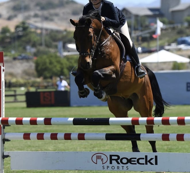 🎄𝐓𝐇𝐄 𝑯𝒐𝒍𝒊𝒅𝒂𝒚 𝐂𝐋𝐀𝐒𝐒𝐈𝐂🎄 Happening now thru MONDAY | DECEMBER 15th - Available EXCLUSIVELY on HorseBid's website! For more details and to register visit: www.Horsebid.com CONSIGNOR CONTACT: Combs Quarter Horses 727-741-0559 LOCATION: Cleburne, TX BREED: Hanoverian REGISTERED: Yes REGISTERED NAME: Copilot COLOR: Bay HEIGHT: 16.2 AGE: 16 GENDER: Gelding If you need a tried and true meter packer that you can maintain at home and ride like a quarter horse.. this is your guy!! Copilot aka Pie is the most amazing 16yr old 16.2h bay BRANDED HANOVERIAN gelding. Lifetime registered in the USEF and the USHJA with lots of show miles all the way up to the 1.25! Pie is best suited for the 3’6” and below riders. This is his happy place and where he will take you to the win! Currently being ridden by a 13yr old 4’11 rider. She has shown him successfully from the 2’3” up to the meters. She comfortably schools him at home 3’-3’3”. This is not your average quirky warmblood. He takes zero prep! He can sit for weeks. And you can tootle him around bareback and trail ride him!! He’s also got auto lead changes!! WESTERN EXPERIENCE: Pie will happily pack the western saddle around and trail ride with the best of them. He has the nicest slow canter and he even neck reins!! DISPOSITION: Pie gives the meaning to “in your pocket”. He’s always in your business and ready to get loved on! He absolutely adores people. He will leave friends or food just to get muzzle kisses!! Pie has the most laid back way about him you could easily teach even the timid “up down” lessons on him! We’ve let several beginner and inexperienced riders hack him around. He will even ride at night under the lights and shadows! Good around cows, dogs, cats and even a pestering goat! UPKEEP: This will surely be your favorite part! Pie eats two flakes of alfalfa twice a day. THATS IT! No supplements, no fancy grain.. just good hay keeps him fat as a tick! Pie requires absolutely no maintenance to keep him sound! We do keep him in shoes all the way around as a personal preference to give him support for the job we are asking him to perform. TURNOUT: Pie is super friendly and easy to get along with in the pasture. Has been turned out with mares and geldings without any fuss. BAD HABITS/ VICES: Pie has no nasty habits like buck, rear, bolt, bite or kick. Pie does like to turn around and walk out of a trailer if it is a step up. Pie also prefers to be on the rail when riding in heavy traffic at the horse shows. TACK: Pie rides English, western and bareback. He’s been easily ridden in halters, snaffles, a D with a port and a hackamore!