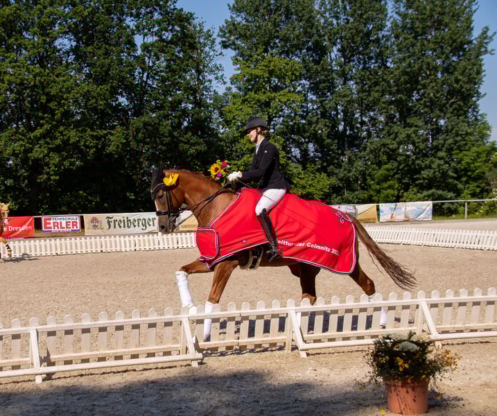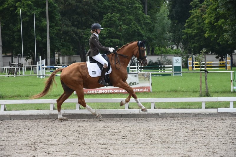 Auf Grund von Zeitmangel durch mein Studium steht ein absolut liebenswerter Hannoveraner Wallach, 17 Jahre alt, 1,70 m groß, im schicken Fuchskleid zum Verkauf. ✅ Bis M** ausgebildet und vorne platziert, mehrfach M* gewonnen, zuletzt L** vorne platziert ✅ Sehr brav im Umgang – auch für Kinder und Jugendliche leicht zu bedienen ✅ Verladefromm & unkompliziert beim Schmied ✅ Kennt Boxenhaltung und Offenstall ✅ Unerschrocken im Gelände – allein und in der Gruppe ✅ Äußerst zuverlässig im täglichen Training Trotz seines Alters ist er noch top motiviert, sehr rittig und macht jeden Tag Freude. Er hat Befunde, die aber aktuell keinen Einfluss auf seine Nutzung als zuverlässiger Freizeitpartner haben. (Röntgenbilder aus 06/24 liegen vor) Er kann einem Kind oder Jugendlichen noch viel beibringen und bietet damit eine tolle Chance, von seiner Ausbildung und Erfahrung zu profitieren. Auch kleinere, angepasste Turnierstarts (Führzügel, Reiterwettbewerb, E-A Dressur) sind weiterhin möglich. Da er im Außengalopp sozusagen "Bombensicher“ ist und überdurchschnittlich gute GGA hat, wäre er sicherlich bei bedachten Einsätzen für die Children Tour nicht uninteressant. Ich suchen für ihn ein liebevolles 5-Sterne-Zuhause mit Endplatz, wo er als treuer Freizeitbegleiter geschätzt wird und an erster Stelle steht. Platz vor Preis!