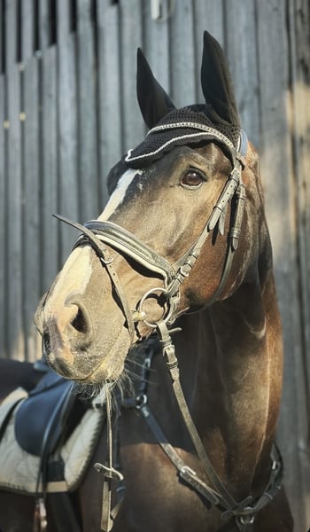 Beautiful Hanoverian gelding, 19 years old, approximately 17.5 hands, with a very gentle temperament. He is reliably ridden in all basic gaits and consistently behaves well and calmly. Character-wise, he impresses with his honest and friendly nature. He may initially be a bit mistrustful, but once he has built trust, he is a true buddy. He is uncomplicated and low in the pecking order in social interactions. He is well-behaved at the blacksmith and easy to load. Trial rides are €25 and will be fully credited against the purchase price. Only to experienced and caring owners. He has gastric ulcers and is currently under treatment.