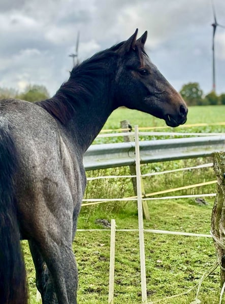 Zum Verkauf steht ein 1,5 jähriger Hannoveraner Jährling. Abstammung: Grey Top x Levisonn Geburtsjahr: 2024 Er ist derzeit 1,50 cm groß, wird ein geschätztes Endmaß von 1,60-165 cm bekommen. Gerd seine Vollschwester ist 2 jährig die beste Stute auf der Stutenshow geworden. Er wächst bei mir im Herdenverband auf und wird an das gesamte Pferde ABC rangeführt aber er macht seinen Job sehr gut. Er ist aufmerksam, super bemüht, lieb und unkompliziert im Umgang. Das Grundhandling ist mir sehr wichtig, so kennt er schon das Verladen und auch den Schmied. Er wurde auch regelmäßig entwurmt und ist Tetanus geimpft. Dadurch das er täglich in Menschenhand ist, ist er sehr zutraulich und kennt es auch am ganzen Körper angefasst zu werden. Die Jungpferde wachsen bei uns auf einem Landwirtschaftlichen Betrieb auf und so kennt er selbstverständlich auch Trecker, Hunde und alles was dazu gehört. Im Sommer laufen sie auf großen Weiden. Er kennt also Stall, Laufstall und auch Selbsttränken. Falls er dein Interesse geweckt hat, freut er sich über ein persönliches Kennenlernen. Bei weiteren Fragen stehe ich gerne zur Verfügung