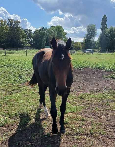 Jeune cheval très sage, bien développé, avec une excellente lignée. Sa mère a connu un grand succès dans le sport international de concours complet et de dressage, et son père est bien connu ! Il grandit dans un environnement adapté, en troupeau. Très bien avec le maréchal-ferrant et le vétérinaire. Un petit diamant brut, il ne sera confié qu'à de bonnes conditions d'élevage. Pour un intérêt sérieux, n'hésitez pas à demander plus d'informations. Les demandes écrites ne peuvent pas être répondues.