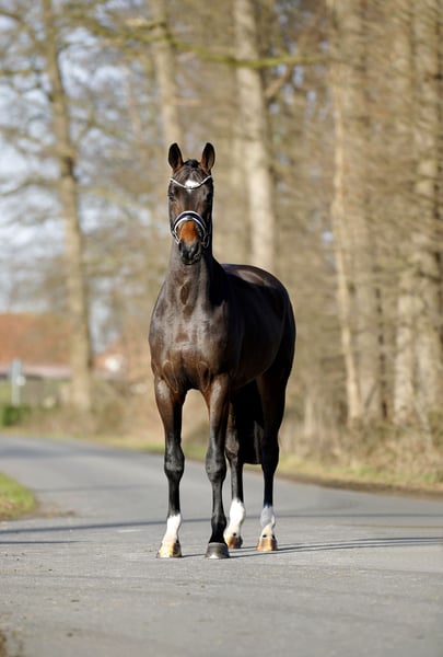 Ein “Must Have” Dressurkandidat mit überwältigendem Charme und einem ganz besonderen Auftritt. Wunderschön stimmiges, korrekt aufgemachtes Nachwuchspferd in schöner Typgebung, welches in nahezu jeder Hinsicht großzügig von der Natur bedacht worden ist. Kapital veranlagt in seiner Bewegungsqualität, offeriert er allerbeste Reiteigenschaften bei perfekter Balance und Einstellung.Bei naturgemäß erst wenigen Einsätzen unter dem Sattel ist die Leistung dieses Naturtalents nicht zu leugnen. Grundsolide aufgezogen, bestens sozialisiert und erzogen. Gute Röntgenbilder und Voruntersuchung vorhanden.