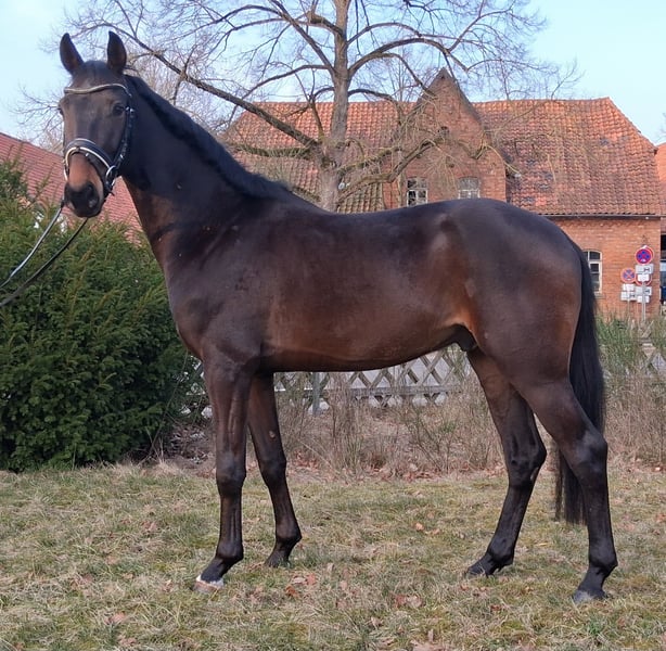 Hannoverian Gelding – Promising Youngster for Dressage We are offering a promising Hannoverian gelding, born in 2023, for sale. The dark bay young stallion impresses with his elegant appearance and balanced temperament. Standing at 16.1 hh, he is the perfect size for ambitious riders seeking a well-developed and eager-to-learn partner. This young Hannoverian has already been backed. His open-minded nature and pleasant character make him a reliable companion for building a successful dressage career. Thanks to his solid pedigree, he has the necessary foundation to develop further in the higher levels. This promising young horse is ideal for riders looking for a talented and well-mannered dressage partner. If interested, we look forward to hearing from you to discuss further details and arrange a viewing.